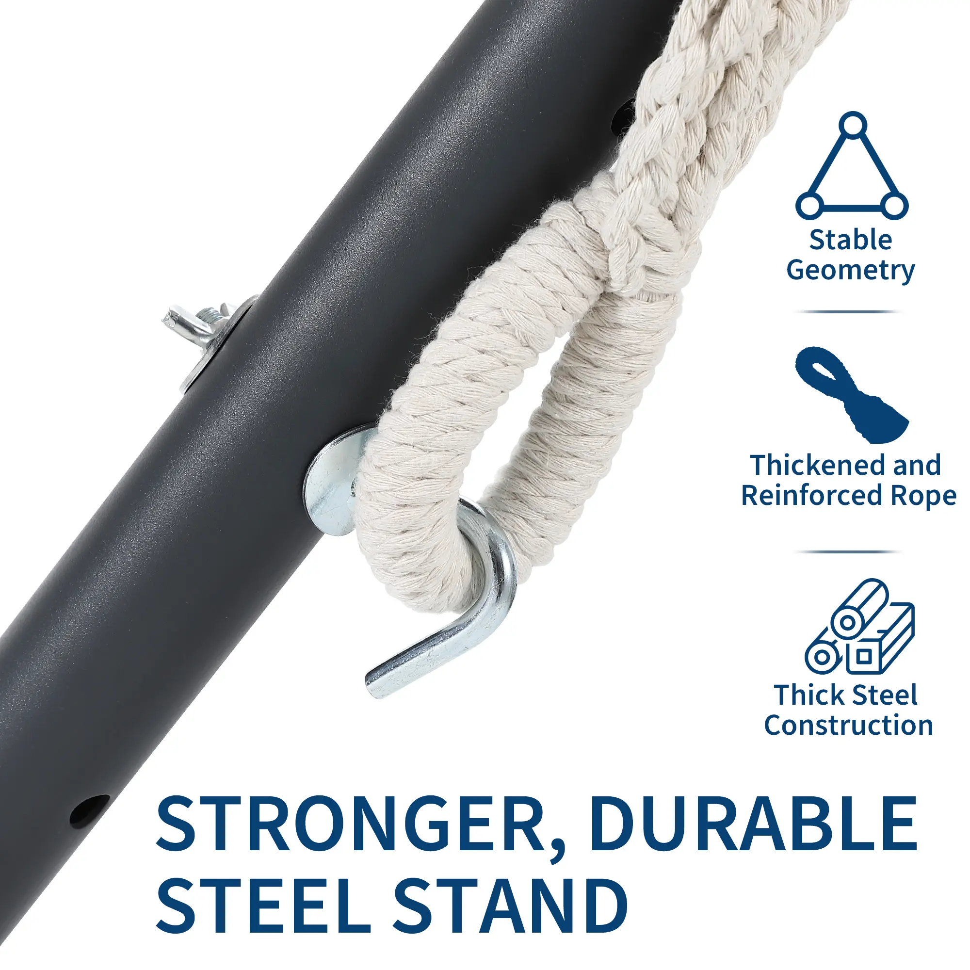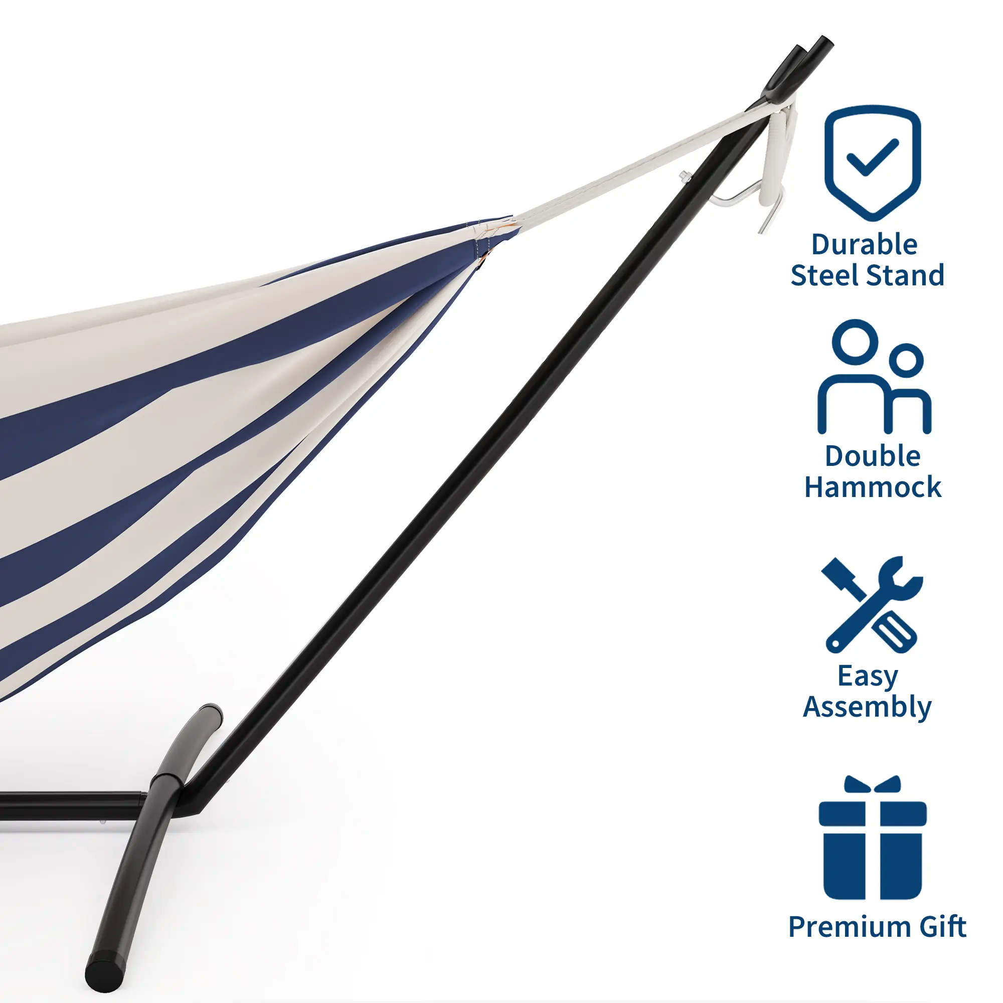 Double Cotton Hammock with Steel Stand for 2 Person, 450lbs Capacity - Portable and Comfortable Indoor Outdoor Lounger with Carry Bag for Backyard, Garden