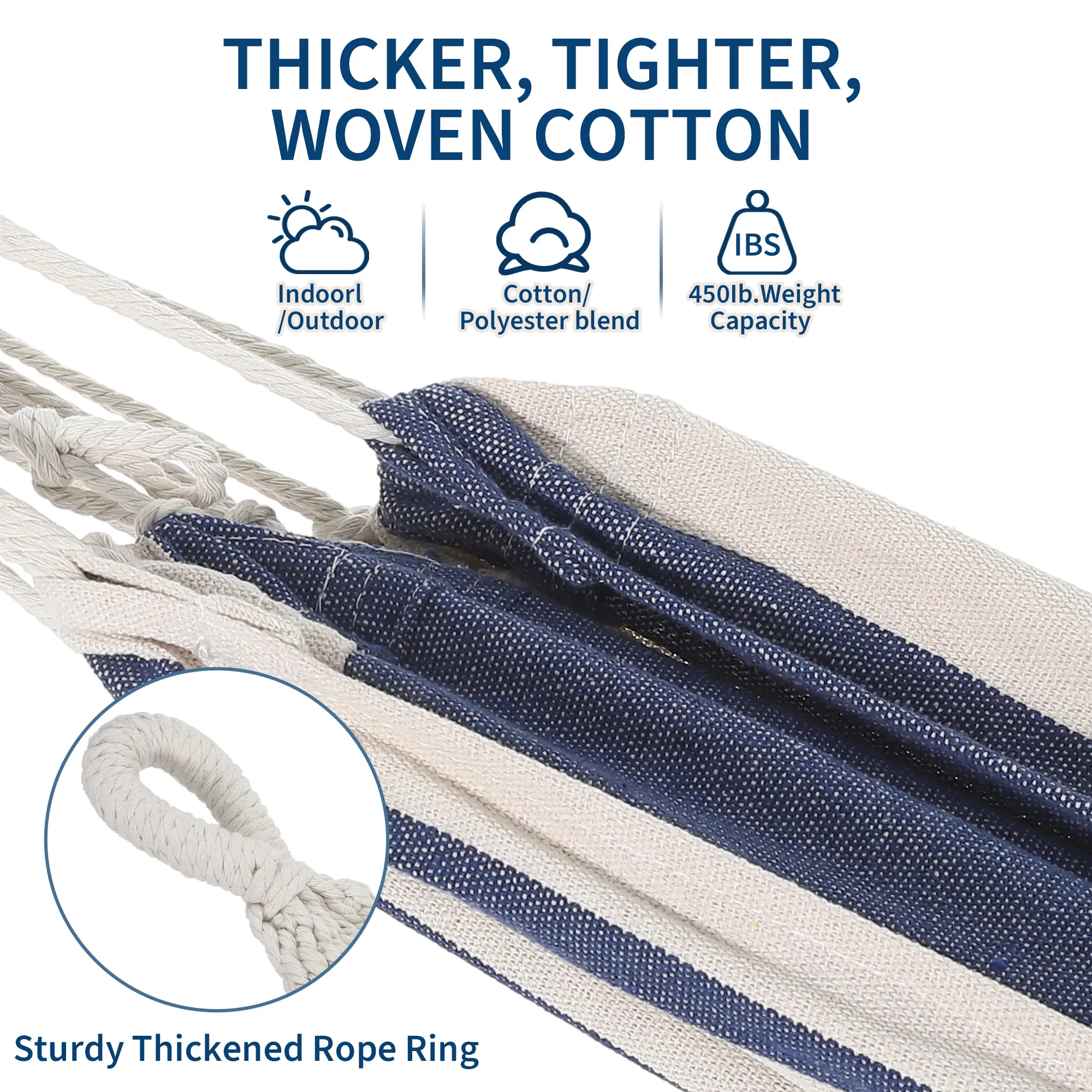 5. Double Cotton Hammock with Steel Stand for 2 Person, 450lbs Capacity - Portable and Comfortable Indoor Outdoor Lounger with Carry Bag for Backyard, Garden