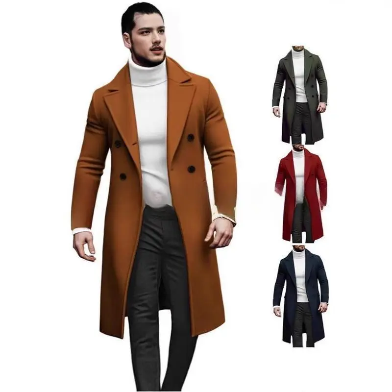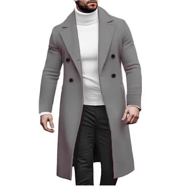 Hot-Selling Men's Woolen Long Coat Double-Breasted Men's Jacket Trench Coat Casual Style Outerwear Menswear