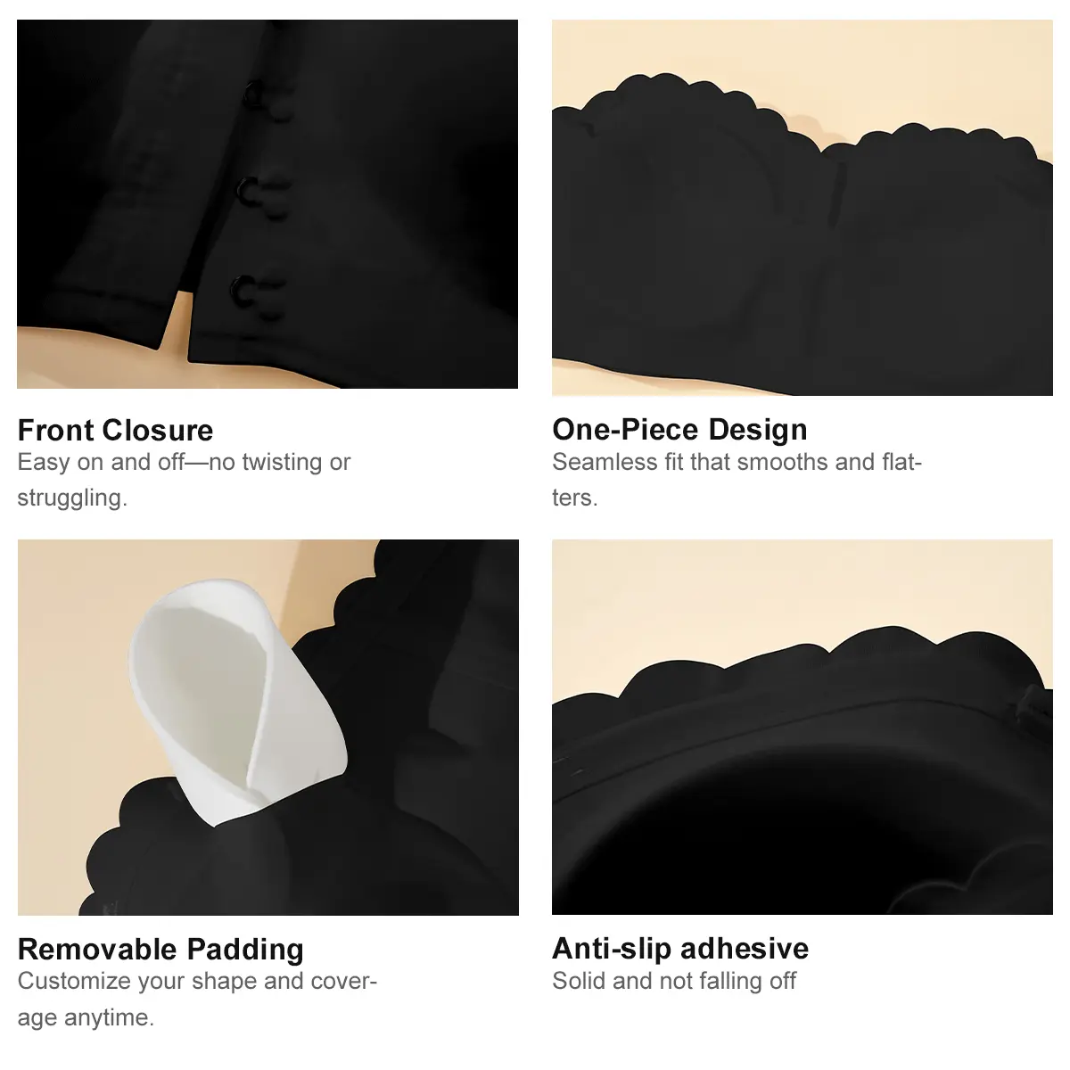·Non-Slip Silicone: Keeps the bra in place throughout the day.