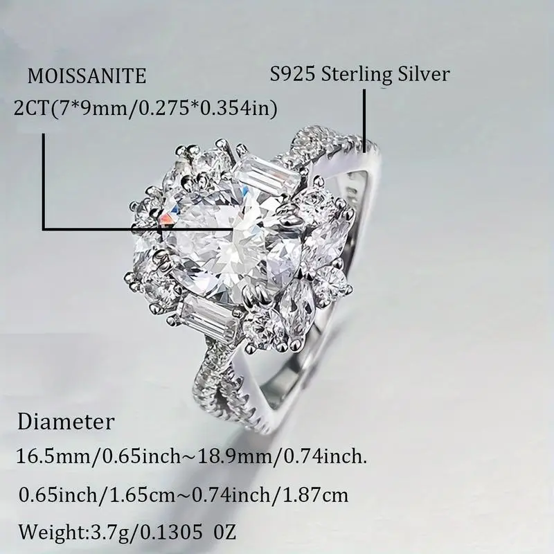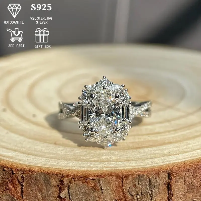 Elegant 2ct Oval Moissanite Engagement Ring - Hypoallergenic S925 Sterling Silver, Bohemian Style with Cross Goose Egg Design, Ideal for Weddings & Anniversaries, Perfect Gift for Her, 3.5g, Low Allergy, Ladies, Bohemia Style, Elegant Style