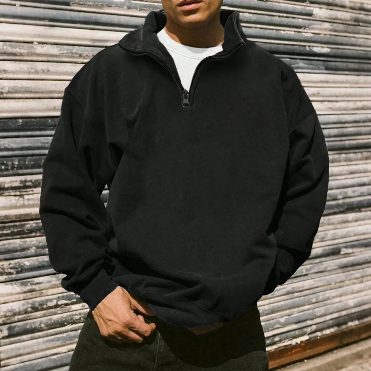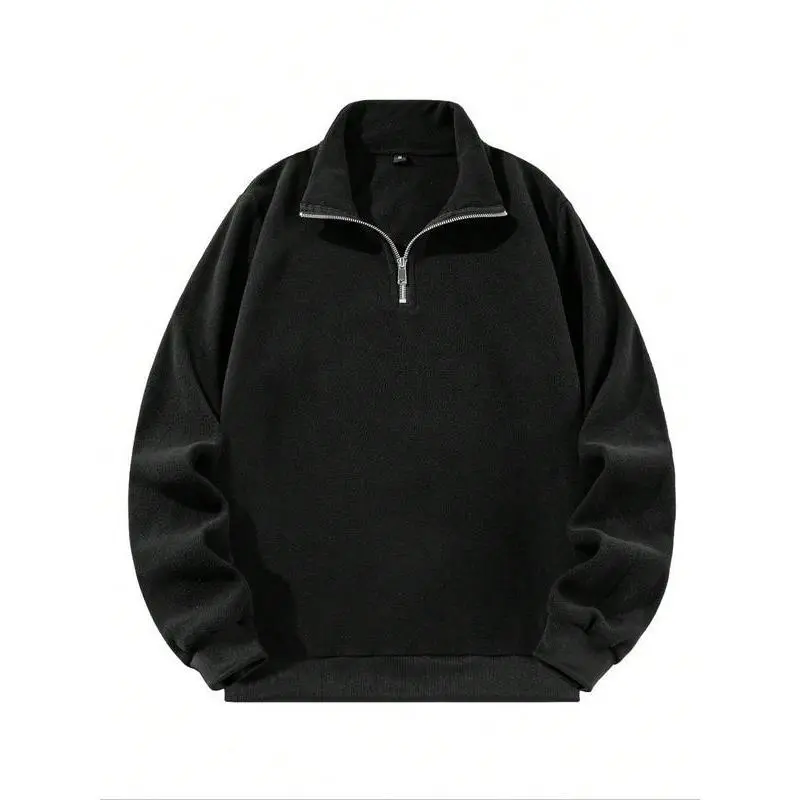 【Unique Half-Zip】: Featuring a half-zip closure, this pullover offers an individualized look while allowing for breathability during cooler months. 【Soft Fleece Fabric】: Crafted from dense fleece material, it provides warmth and a cozy feel against the skin, enhancing your autumn and winter experiences. 【Fitted Structure】: Designed for a fitted silhouette, ensuring a modern appearance while highlighting the wearer's physique without compromising on comfort. 【Plain Aesthetic】: With a solid color pattern, it offers a timeless and easy-to-match look, making layering with other garments straightforward. 【Stand Collar】: The stand collar design adds an element of sophistication, providing additional neck coverage to retain warmth on chilly days.