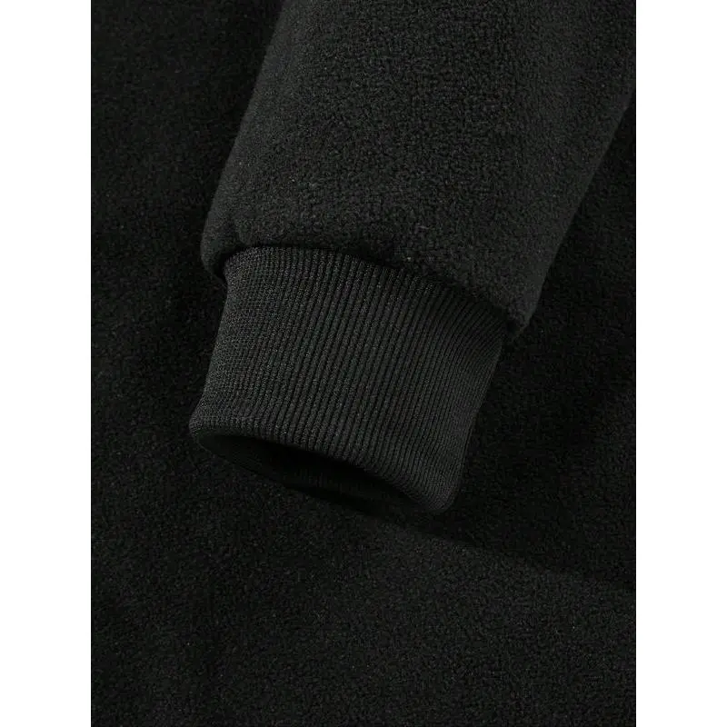 Men's Half-Zip Polar Fleece Long Sleeve Sweatshirt, Thick Solid Color Casual Warm Fashion Stand Collar Pullover for Fall & Winter
