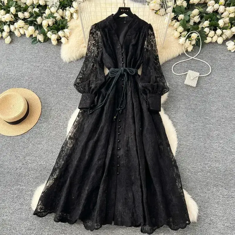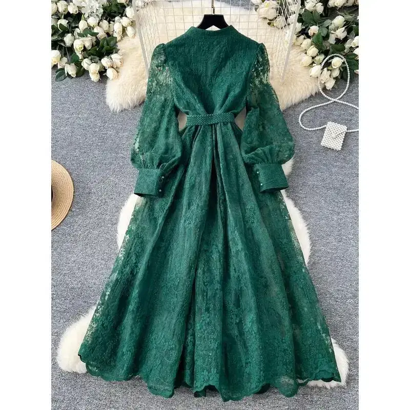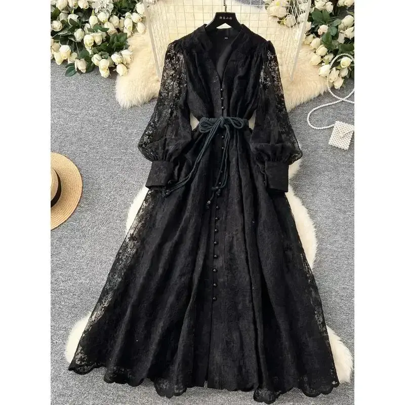 5. France Elegant Vintage High End Evening Dress Women Embroidery Sashes Luxury Long Party Dress Female Casual Fit Chic Clothing Formal Womenswear