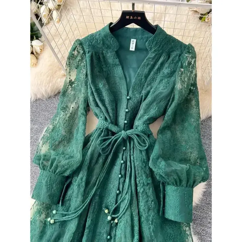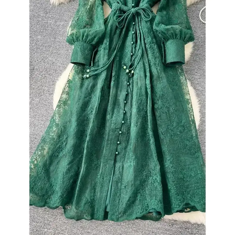 France Elegant Vintage High End Evening Dress Women Embroidery Sashes Luxury Long Party Dress Female Casual Fit Chic Clothing Formal Womenswear