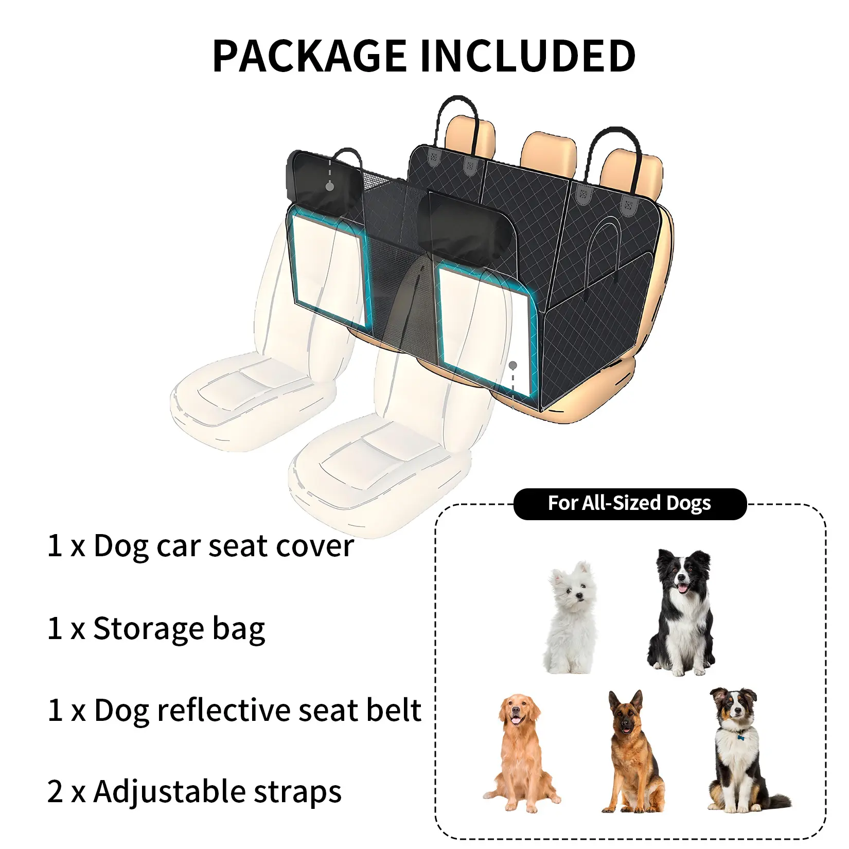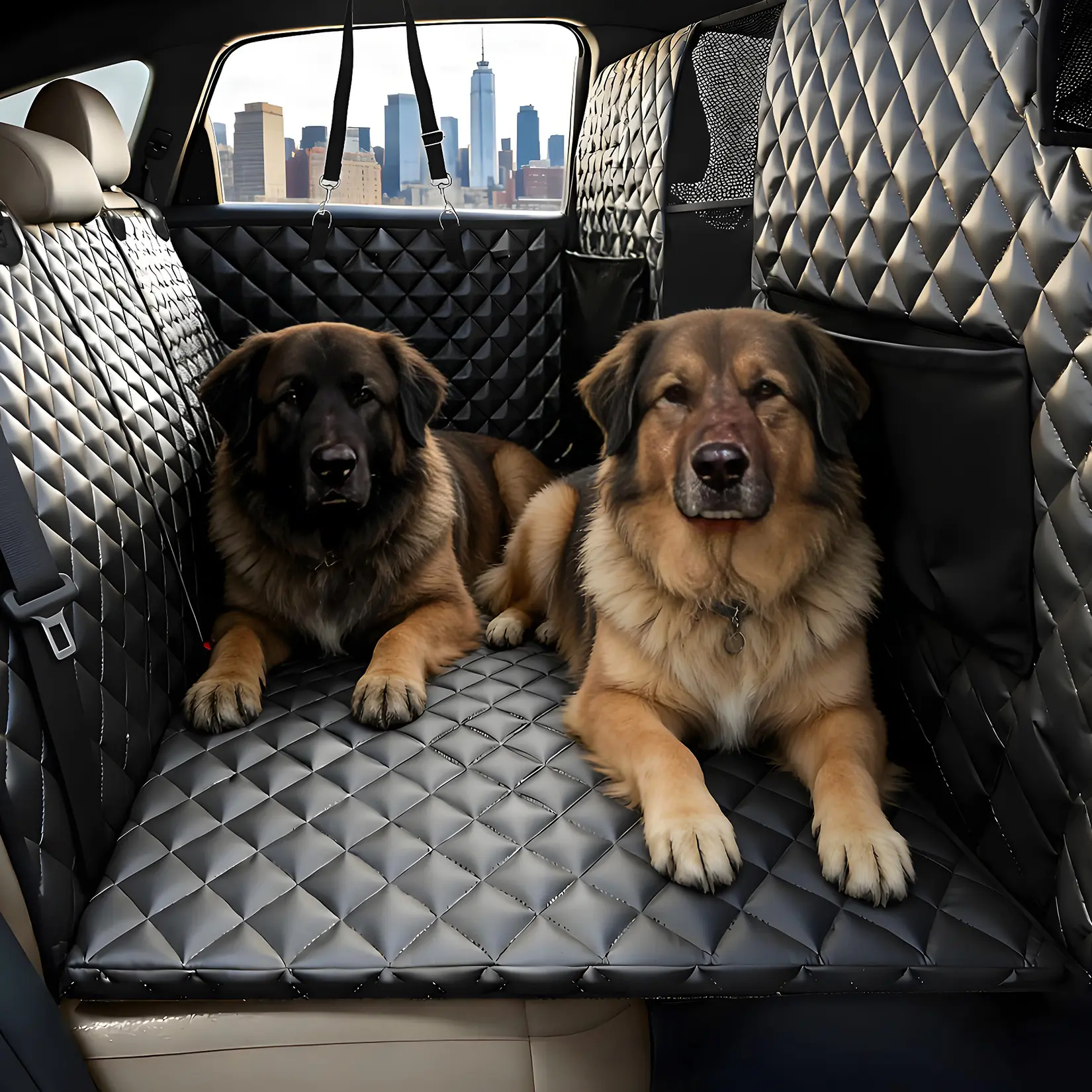 ·2.Ultimate Waterproof & Quick Clean Protection: The 0.3 mm waterproof layer handles up to 32oz of spills and messes. Thanks to the quick-dry surface, simply wipe clean in just 5 minutes—keeping your dog car seat cover for back seat spotless and hassle-free