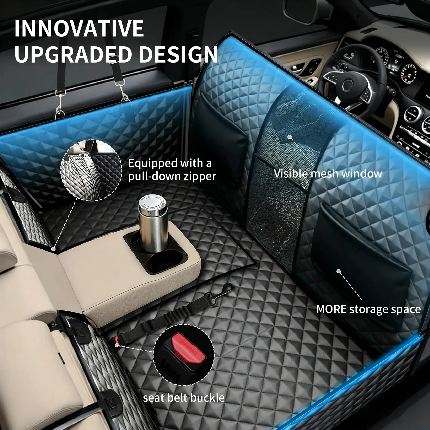 ·3.Heavy Duty Support up to 400 LB: Our 5-layer reinforced hard bottom dog seat cover holds up to 400 LB. Reinforced edges prevent sagging, ensuring your furry friend enjoys a safe, stable spot—say goodbye to sunken mats and hello to worry-free travel