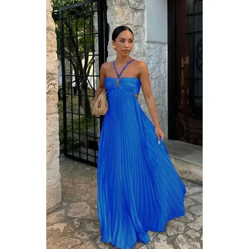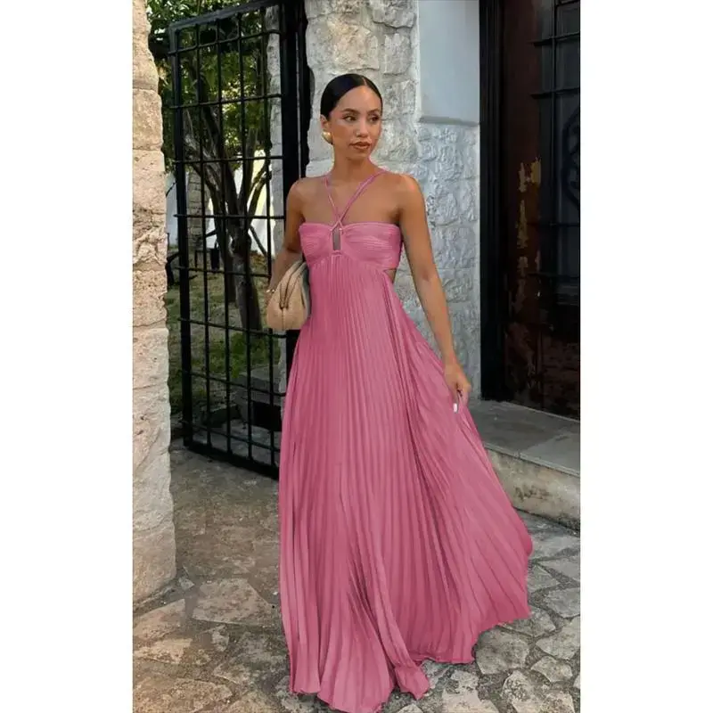 5. Solid Color Strapless Pleated Sleeveless Dress Summer Elegant Summer Outfit