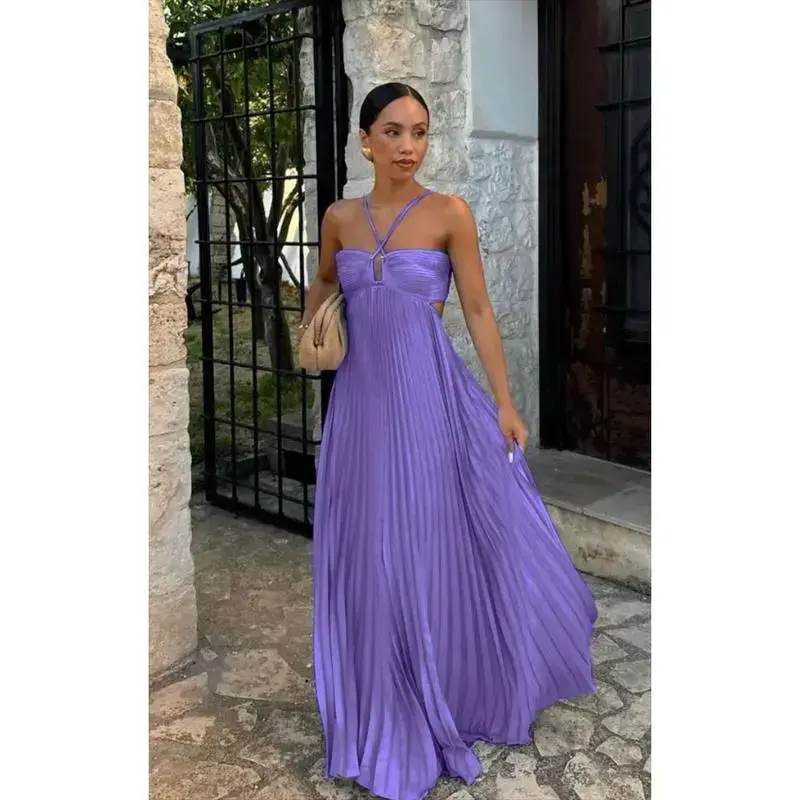 Solid Color Strapless Pleated Sleeveless Dress Summer Elegant Summer Outfit