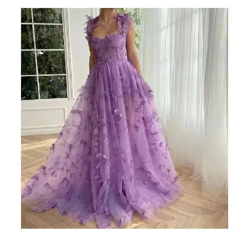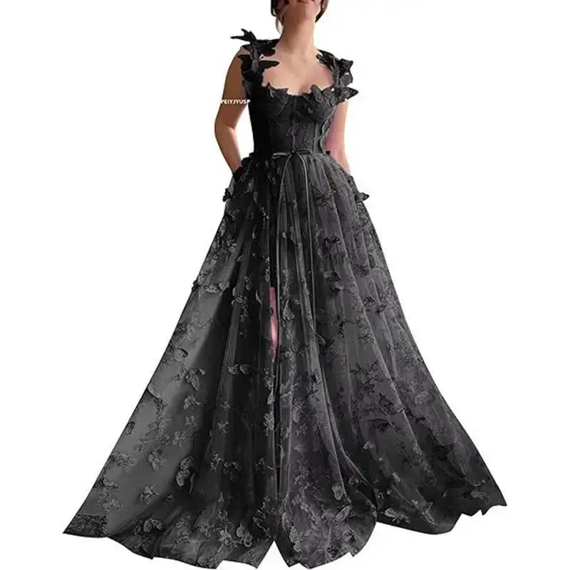 About this item [Excellent Design]:Tulle prom dresses are beautifully designed with a hemline and strappy back so that it can fit all body shapes, highlighting different beauty, with split design to make you more sexy. The whole gown comes with 3D butterfly decorative appliqué, which makes the gown more princess style and adds unique and eye-catching details to the whole gown. [Material]:Spaghetti straps embroidered high split formal dress is made of tulle fabric,it is very elastic, has good wrinkle resistance, and is not easy to pilling after washing. Net yarn has good air permeability, net yarn material is similar to lace, the fabric will have small air holes, nature also has good air permeability. [Occasion]:3D butterfly lace applique tulle dress is perfect for princess prom dresses, evening gowns, ball gowns, weddings, dinner gowns, formal dresses and evening gowns for women teenage girls, prom dresses, prom dresses, homecoming, pageants, celebrity events, women's wedding parties,reception,anniversary and other special occasions.