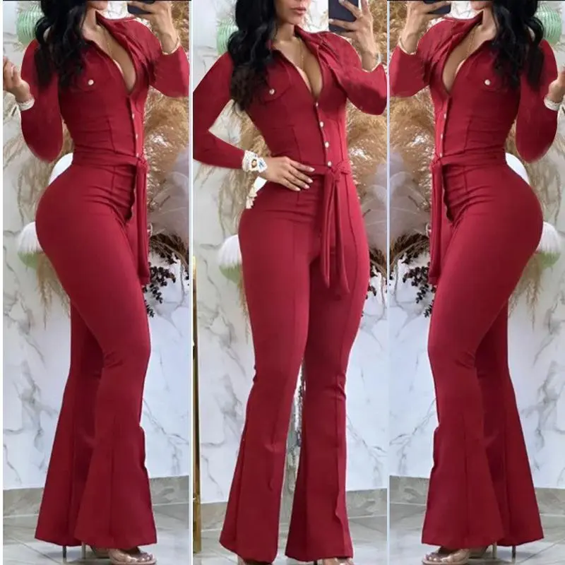 Upgrade your cold-weather wardrobe with this Women's Autumn and Winter Button Lapel Bootleg Pants Jumpsuit! Designed for both style and comfort, this workwear-inspired overall features a classic button lapel collar, flattering bootleg pants, and an adjustable belt to accentuate your waist. Perfect for layering in cooler months, this versatile jumpsuit combines a tailored fit with a trendy utilitarian vibe, making it ideal for both professional and casual settings. The premium fabric ensures warmth and durability, while the functional pockets add practicality. Whether paired with boots or sneakers, this fashion-forward overall is a must-have for effortless chic this season! /Key Features:Button lapel collar for a polished lookBootleg pants for a flattering silhouetteAdjustable belt to define the waistWorkwear-inspired design with functional pocketsHigh-quality fabric for autumn/winter comfortVersatile styling ? C perfect for work or casual outings/Stay cozy and stylish with this on-trend jumpsuit ? C a perfect blend of fashion and function!