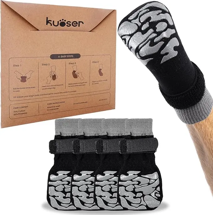 ·All-in-One Paw Protection: Kuose dog socks shield delicate paws from hot pavement, winter salt/cold, soreness, wear, torn claws, cuts, and wounds, while also preventing excessive licking – ideal for senior dog comfort