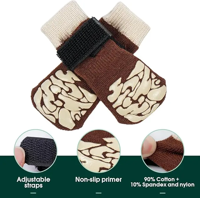 ·Double-Sided Non-Slip Grip: Features unique paw-pattern grips on both sides for maximum traction on hardwood & smooth floors. Even if twisted, they stay effective. Doubles sock lifespan by flipping when one side wears