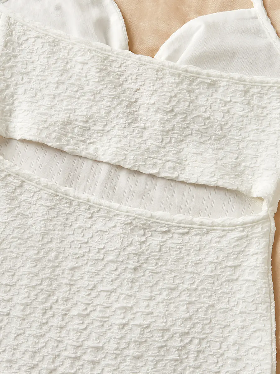 ·Soft white textured fabric for lightweight, breathable comfort