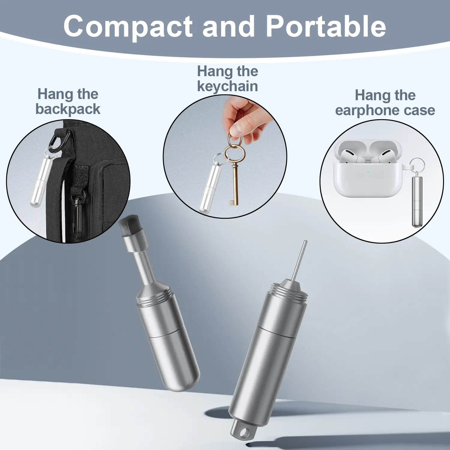 SIM Card Tray Removal Tool with Cleaning Brush, 2 in 1 EDC Portable Keychain Eject Pins Reset Needle Opener Cleaning Pen for iPhone Airpods Pro