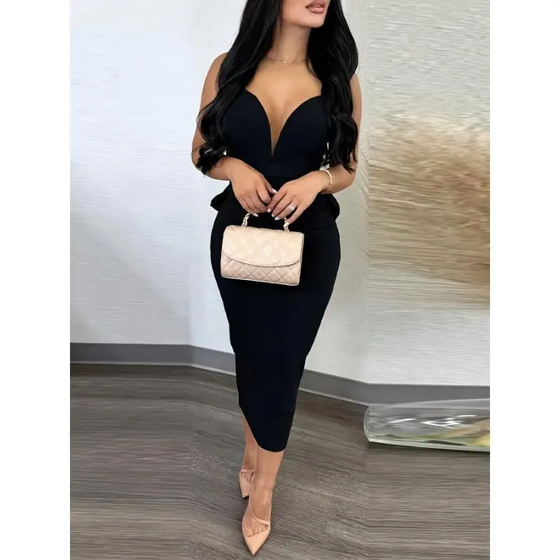 Women's Elegant Bridesmaid Dress ✨ Elegant and Stylish ✨ This women's bridesmaid dress features a deep V-neck and a backless design. It has a high waist with a bow detail and an asymmetrical slit. The dress is made of 95% polyester and 5% elastane, offering micro elasticity. It is a bodycon fit, perfect for adults. The solid color and woven fabric ensure a sleek look. Material and Care Details and Style