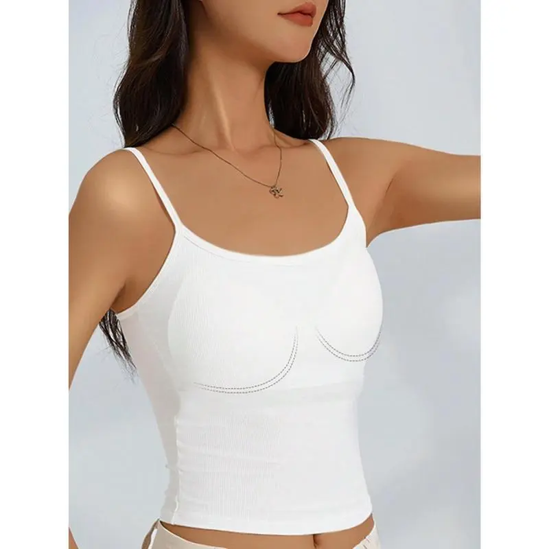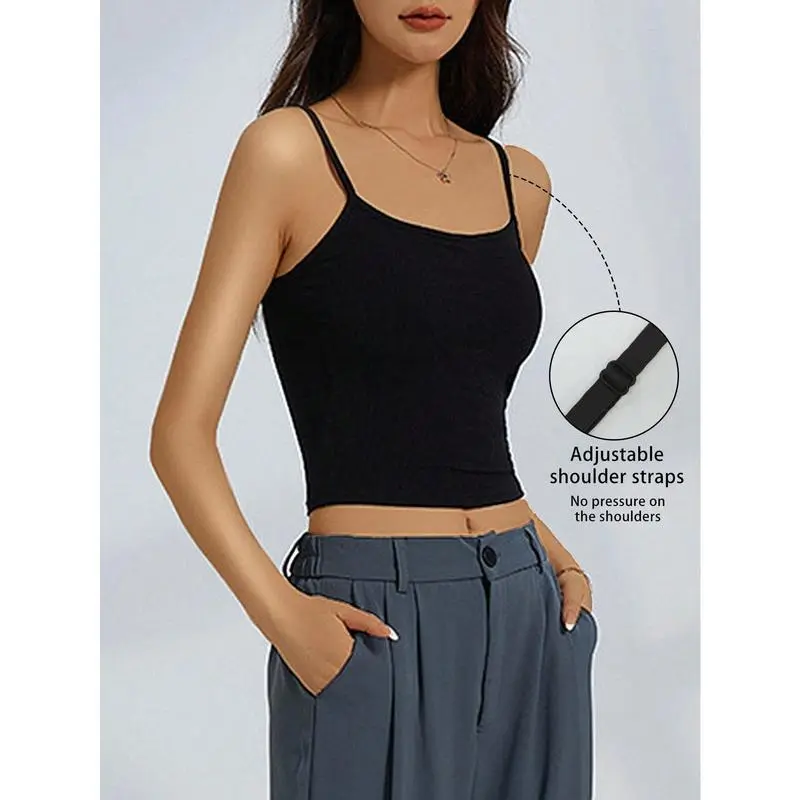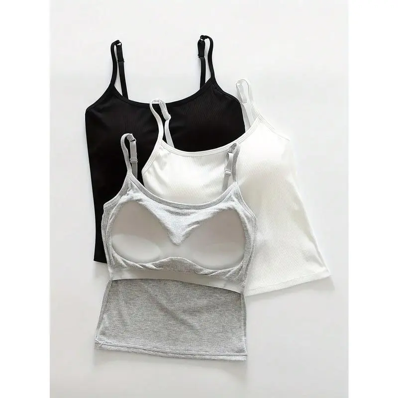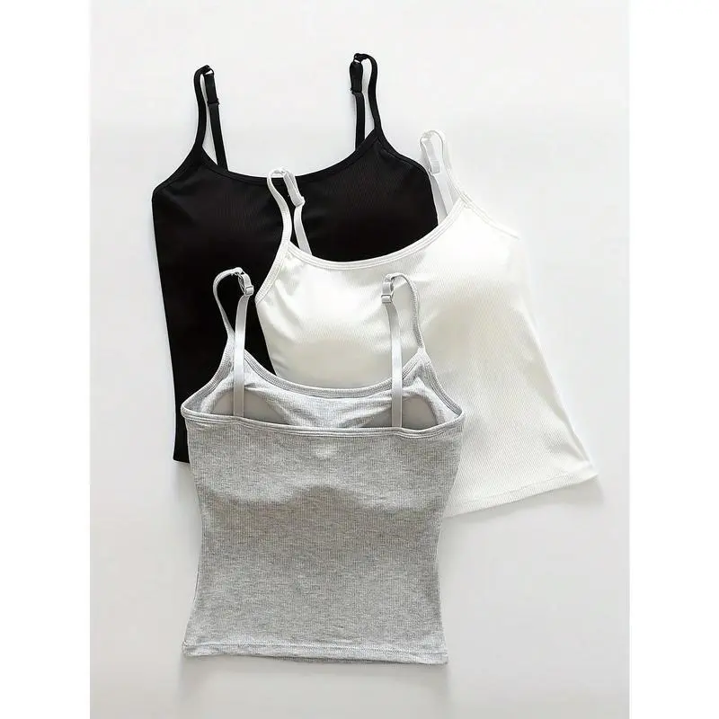 3pcsWomenPlainRibbedCamisoleWithPaddedBra,CasualSkinnyCropWomenswearPieceNightwearTopsComfortSleevelessSlimSpaghettiStrap