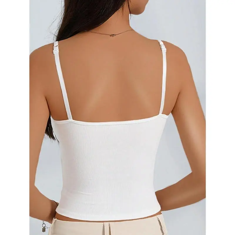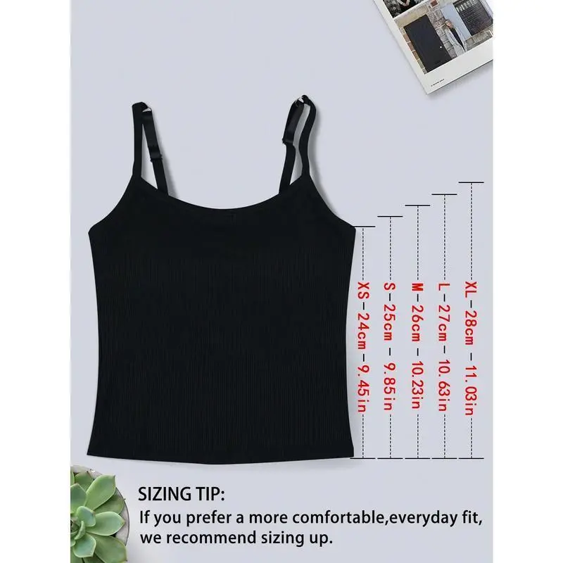 5. 3pcsWomenPlainRibbedCamisoleWithPaddedBra,CasualSkinnyCropWomenswearPieceNightwearTopsComfortSleevelessSlimSpaghettiStrap