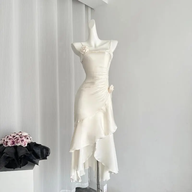 5. 2025 Summer Women French Vintage Dress Spaghetti Strap Frocks One-Piece Evening Party Shoujo Gyaru Wedding Prom Gown Robe New Formal Womenswear Chiffon Cocktail