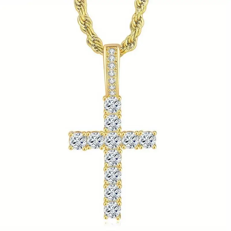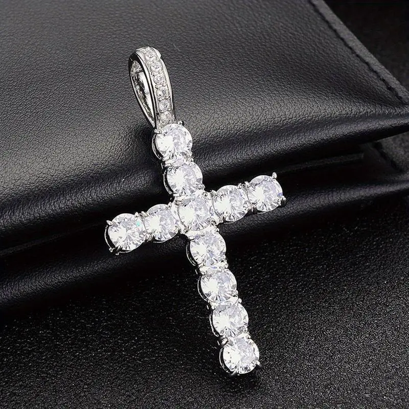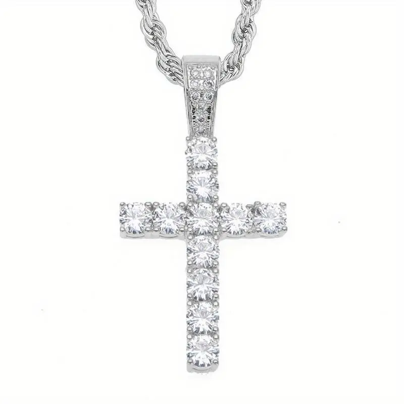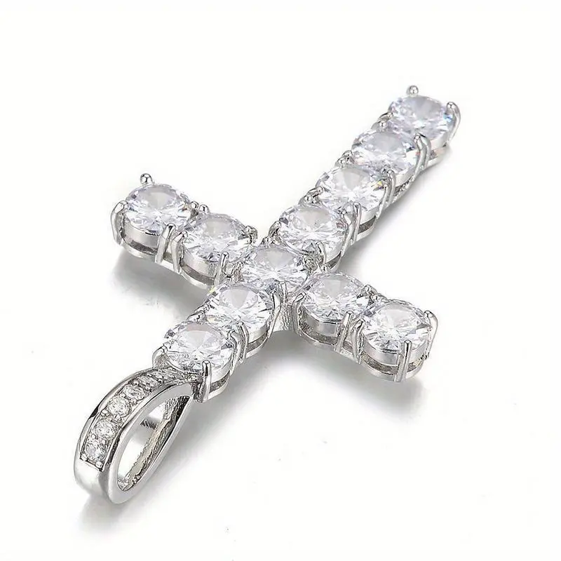 5. 5.5 Karat Moissanite Cross Pendant Necklace, 11 PCs 5mm D Color Moissanite, 3mm * 23.62 Inch Twisted Chain, 925 Sterling Silver Necklace for Women Girlfriend Birthday Anniversary Jewelry Gift