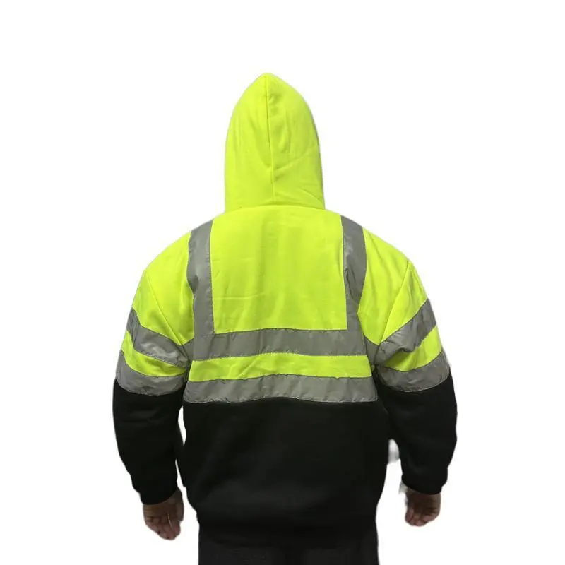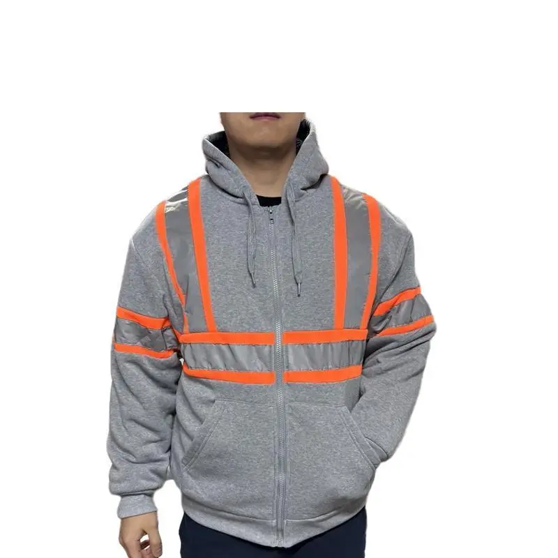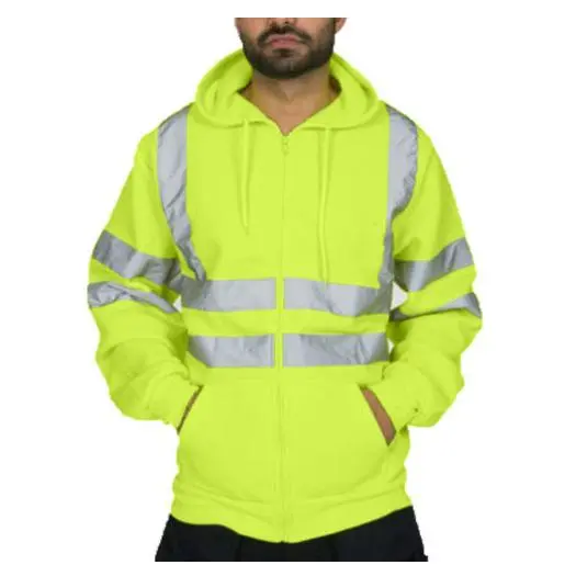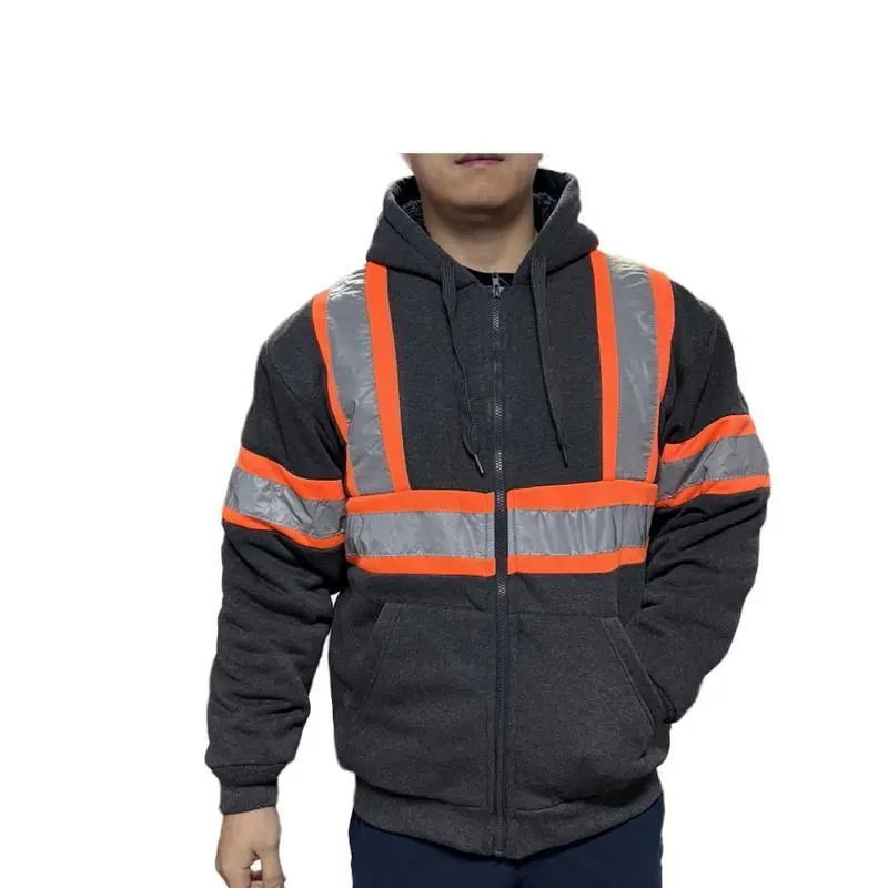 High Vis Safety Reflective Sweatshirt Wool Fleece Zipper Jacket Hoodie Menswear