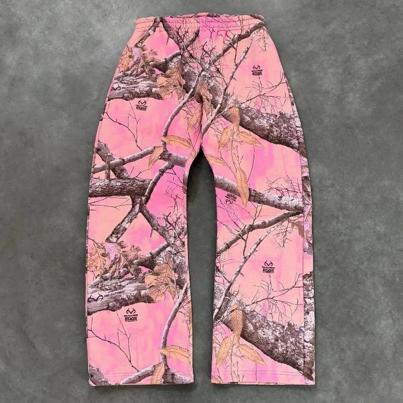 Y2K Trendy Sweatpants Pink Camo Printed Pattern Trousers Streetwear Harajuku Retro Camouflage Loose Unisex Straight Leg Pants