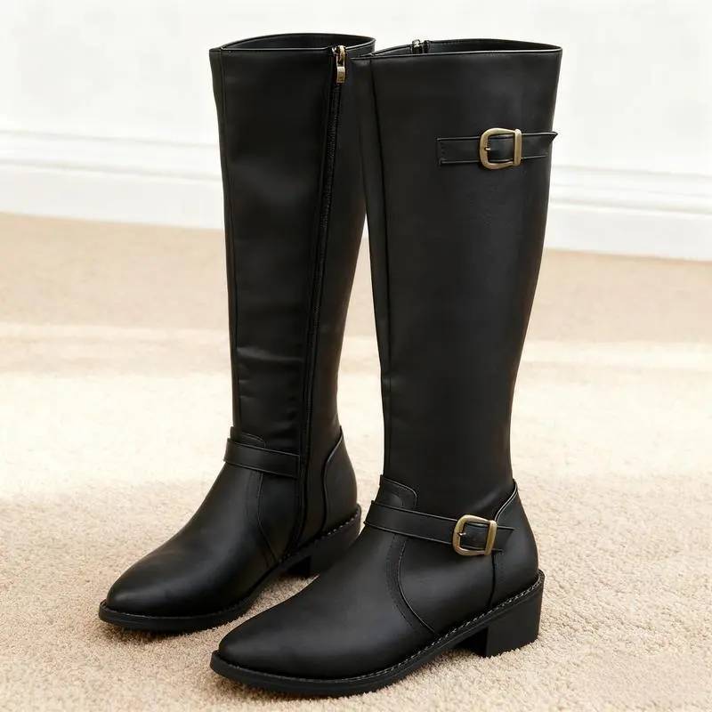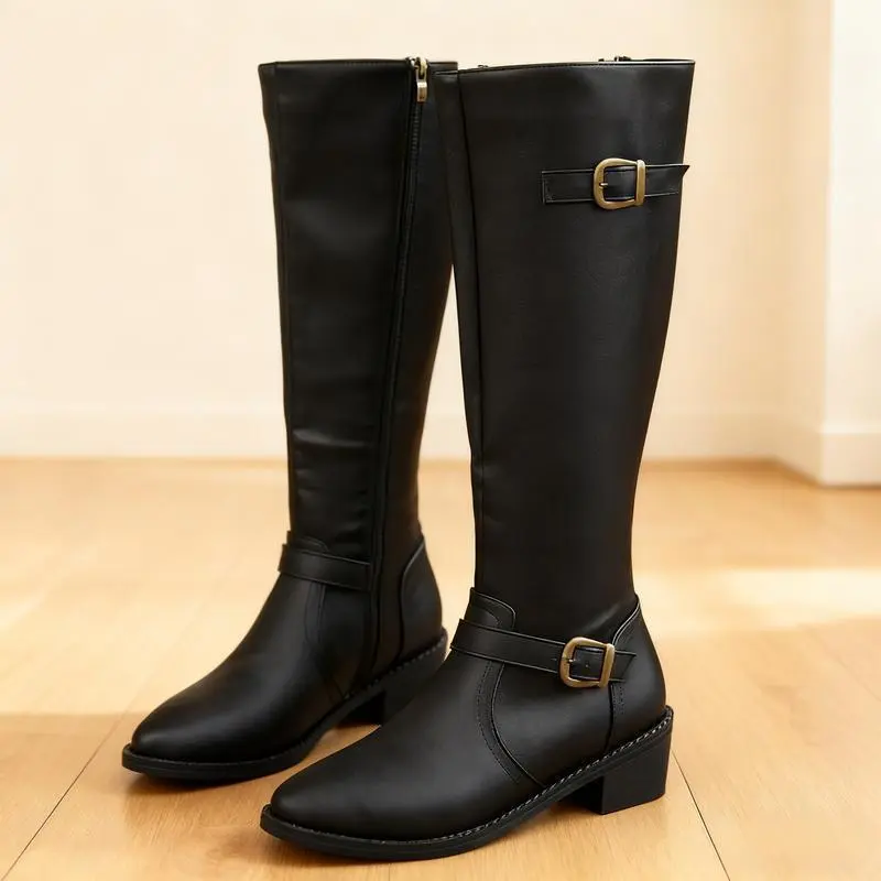 5. Women's Extra Wide Calf Knee High Boots, Wide Width Round-Toe Blocked Heel Winter Tall Boots.