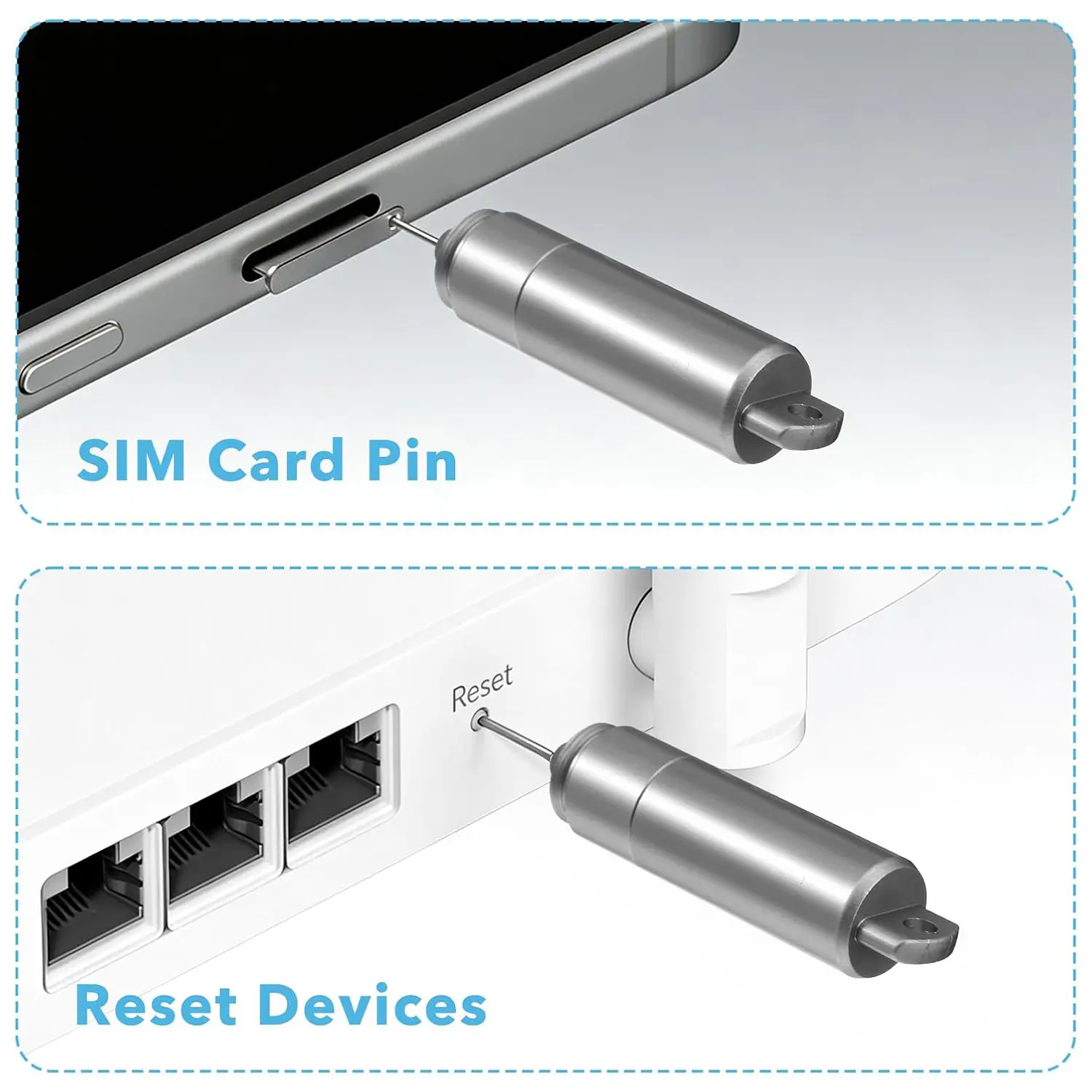 ·Combines a SIM eject tool and device cleaning brush into one. The eject tool effortlessly pops out your phone's SIM card tray and works for reset holes on routers and other devices. The integrated keychain design makes it easy to carry, ready for emergencies anytime.