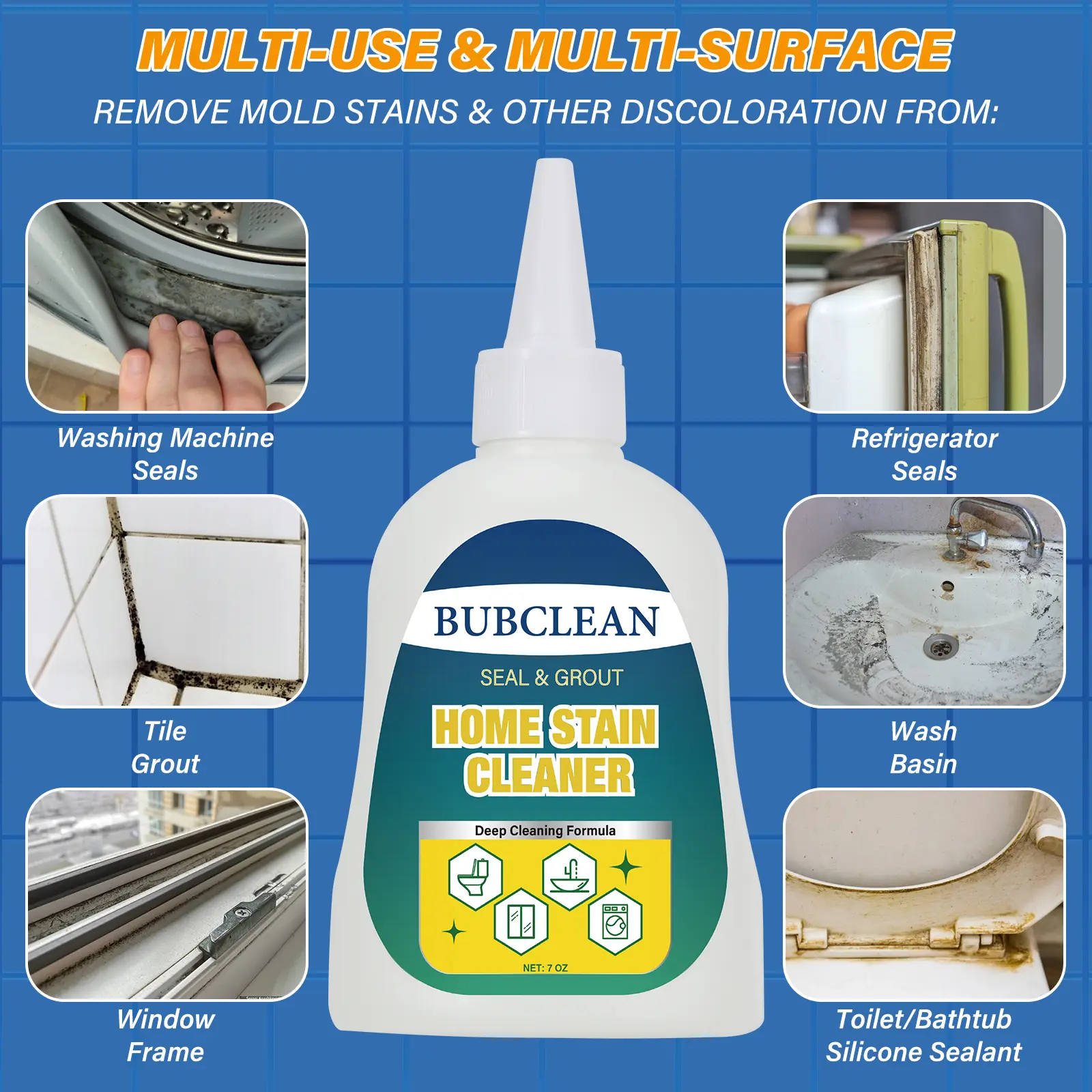 BUBCLEAN Mold Remover Gel with Scrub Brush, Heavy Duty Mildew Stain Remover for Washer Seal, Shower Caulk & Tile Grout, Bathroom Deep Cleaner, 7 Fl Oz