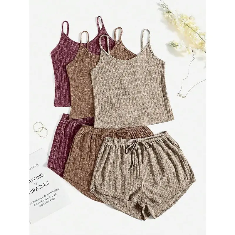 Women's 3 Sets Ribbed Pajamas Set Sleeveless Crop Top and Tie Front Shorts Lounge Set Sleepwear LoungewearWomen's 3 Sets Ribbed Pajamas Set Sleeveless Crop Top and Tie Front Shorts Lounge Set Sleepwear LoungewearWomen's 3 Sets Ribbed Pajamas Set Sleeveless Crop Top and Tie Front Shorts Lounge Set Sleepwear LoungewearWomen's 3 Sets Ribbed Pajamas Set Sleeveless Crop Top and Tie Front Shorts Lounge Set Sleepwear Loungewear