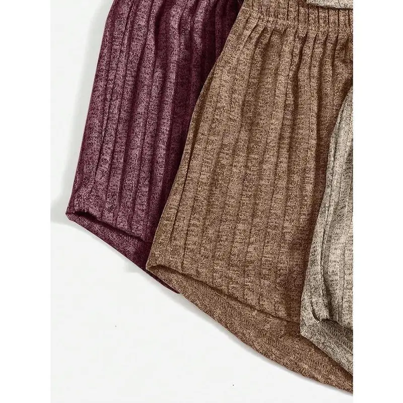 5. Women's 3 Sets Ribbed Pajamas Set Sleeveless Crop Top and Tie Front Shorts Lounge Set Sleepwear Loungewear