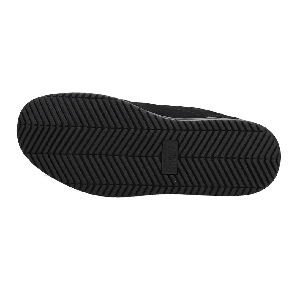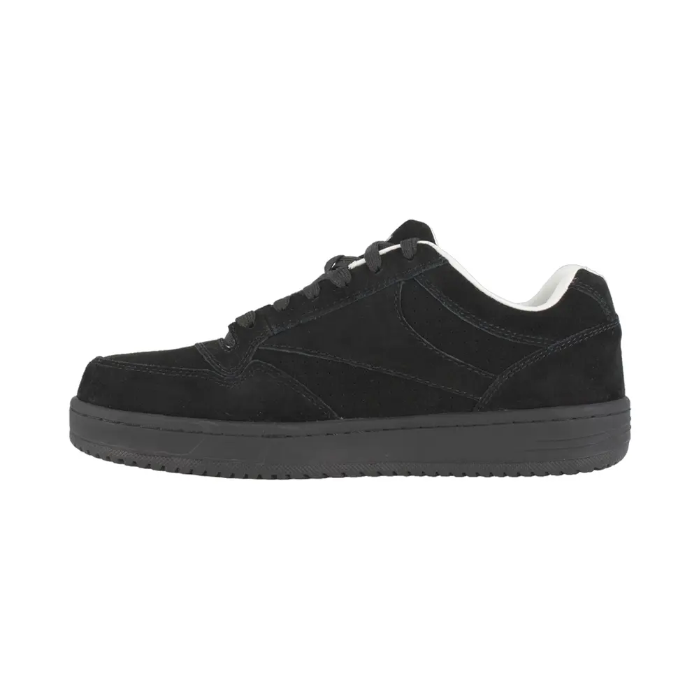 Reebok knows that life doesn't come with a roadmap or an instruction manual and doesn't care how strong you are. Sometimes you have to work through it - even fight through it. Empowering people to win the fight and succeed by engineering and designing great sportswear is what Reebok does best. The Soyay has a distinctive skate style that makes them fun to wear on and off work. Metal-free uppers in a black suede leather are durable and won't scratch against surfaces. Inside a moisture-wicking nylon mesh lines the shoe. Feet rest upon an EVA footbed that cushions and also is removable. These protective shoes have a steel toe that meets ASTM F2413 PT Class 75 Protective Toe standards for impact and compression and also meets electrical hazard standards. A Grip Master slip-resisting outsole exceeds 0.5 ratings for oily/wet with Mark II testing, helping you to stay afoot on a variety of flooring surfaces. Look great and be protected with the Soyay skate work shoe.