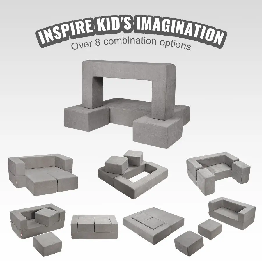 VEVOR Kids Couch, 4Pcs Modular Kids Play Couch, Toddler Couch Sofa Bed, Kids Chair Seat Playroom Furniture, Child Sectional Sofa with Removable Cover for Kids Girls Boys, GreyVEVOR Play Couch, Modular Kids Couch 15pcs, Toddler Foam Sofa Couch with High-density 25D Sponge for Playing, Creating, Sleeping, Imaginative Kids Furniture for Bedroom and Playroom