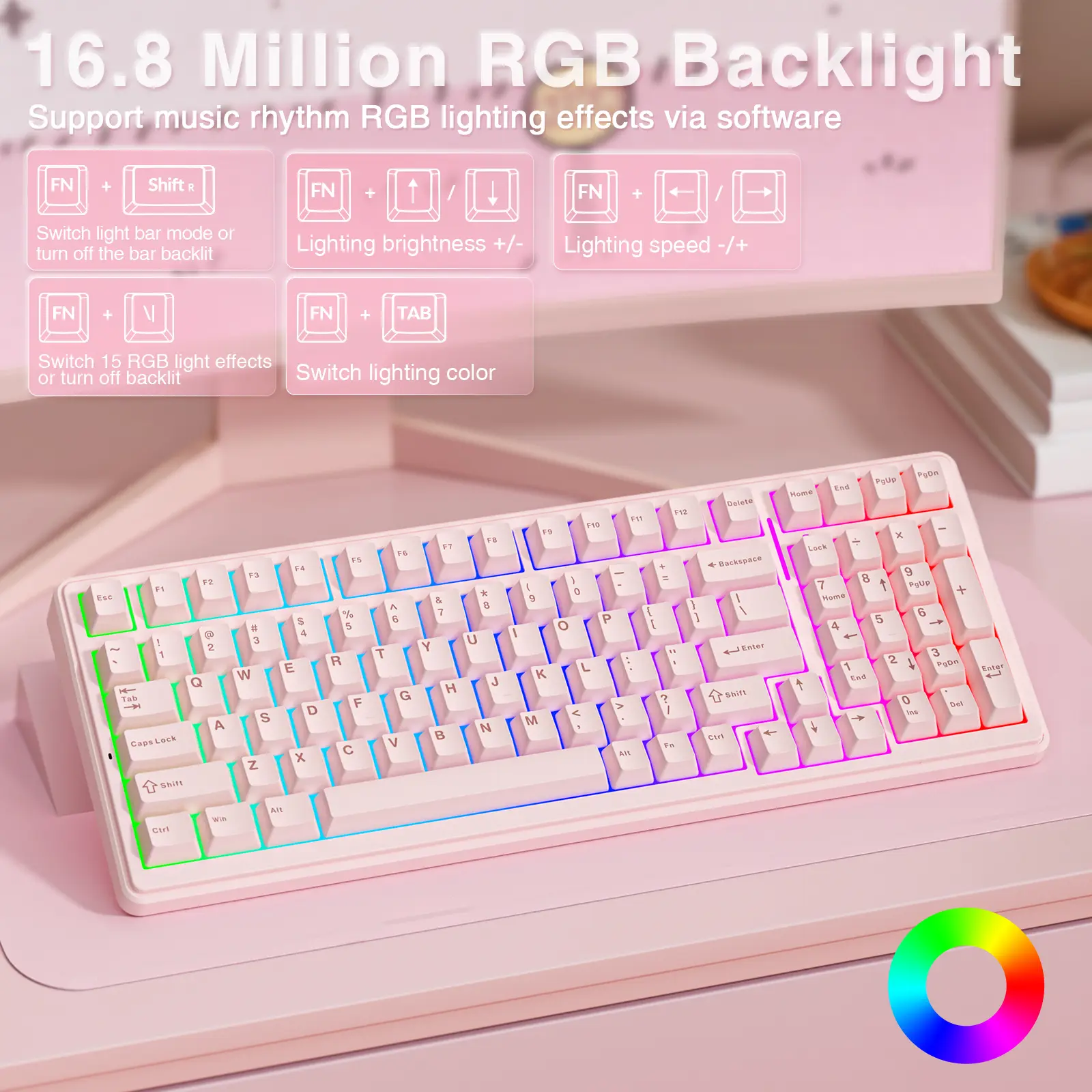 Keyboard sound and color may vary slightly due to recording equipment, lighting conditions, screen settings, and individual perception.
