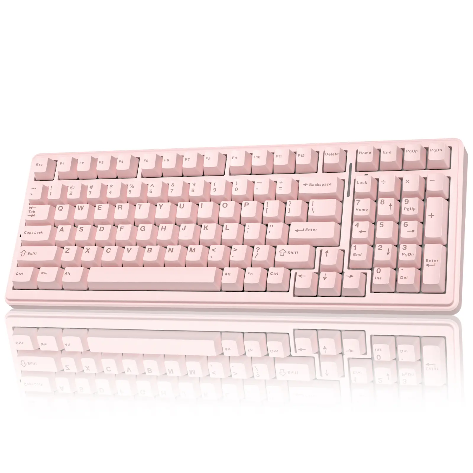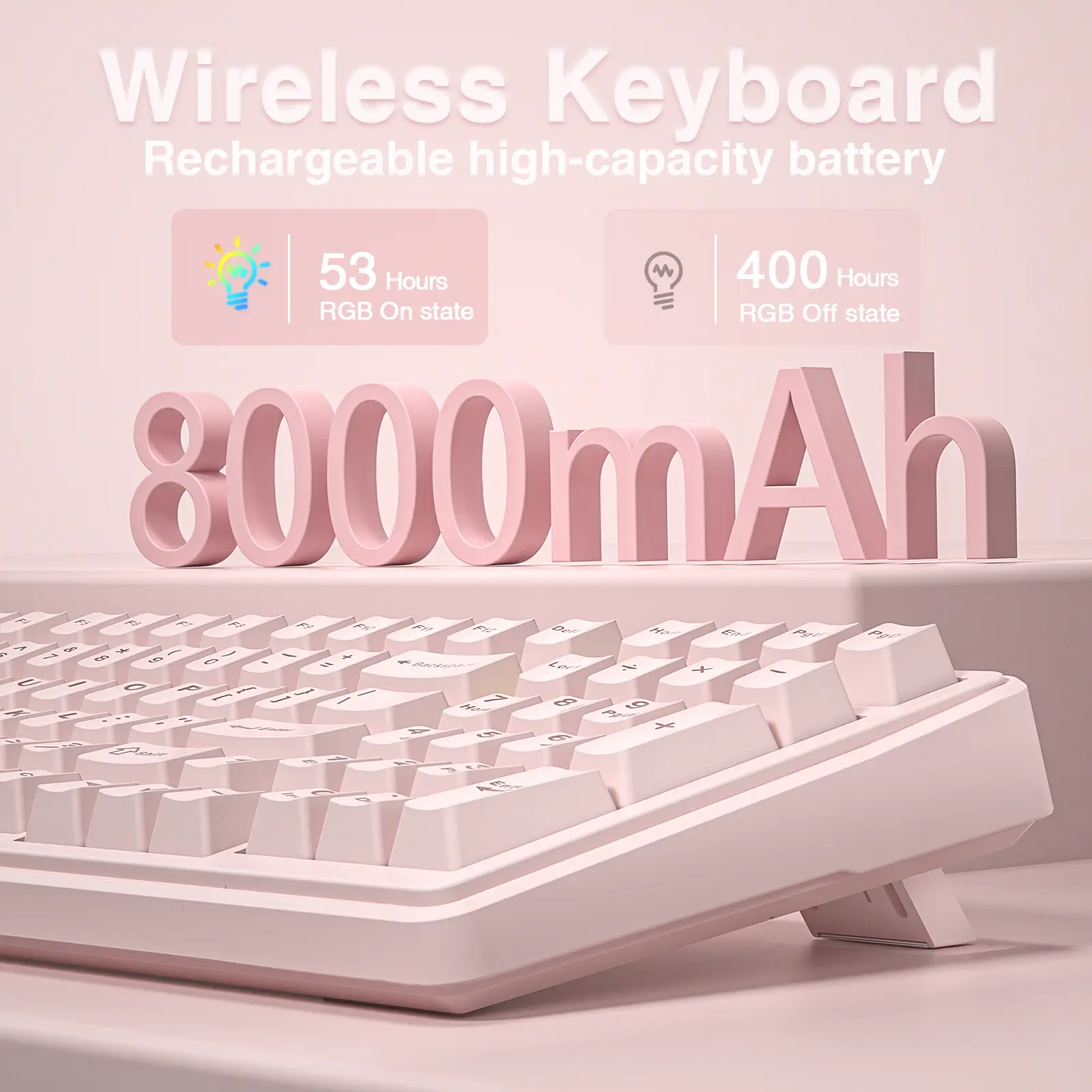 ·PBT Keycaps and 8000mAh Battery: 99 keys 96% layout compact keyboard can save more desktop space while keep necessary arrow keys and number area for games and work. The rechargeable keyboard built-in 8000mAh large capcacity battery to provide more power and longer battery life. Double shot PBT keycaps, made from two colors material molded into each others, make the keycaps characters maintain the vibrance and saturation, clear and not fade
