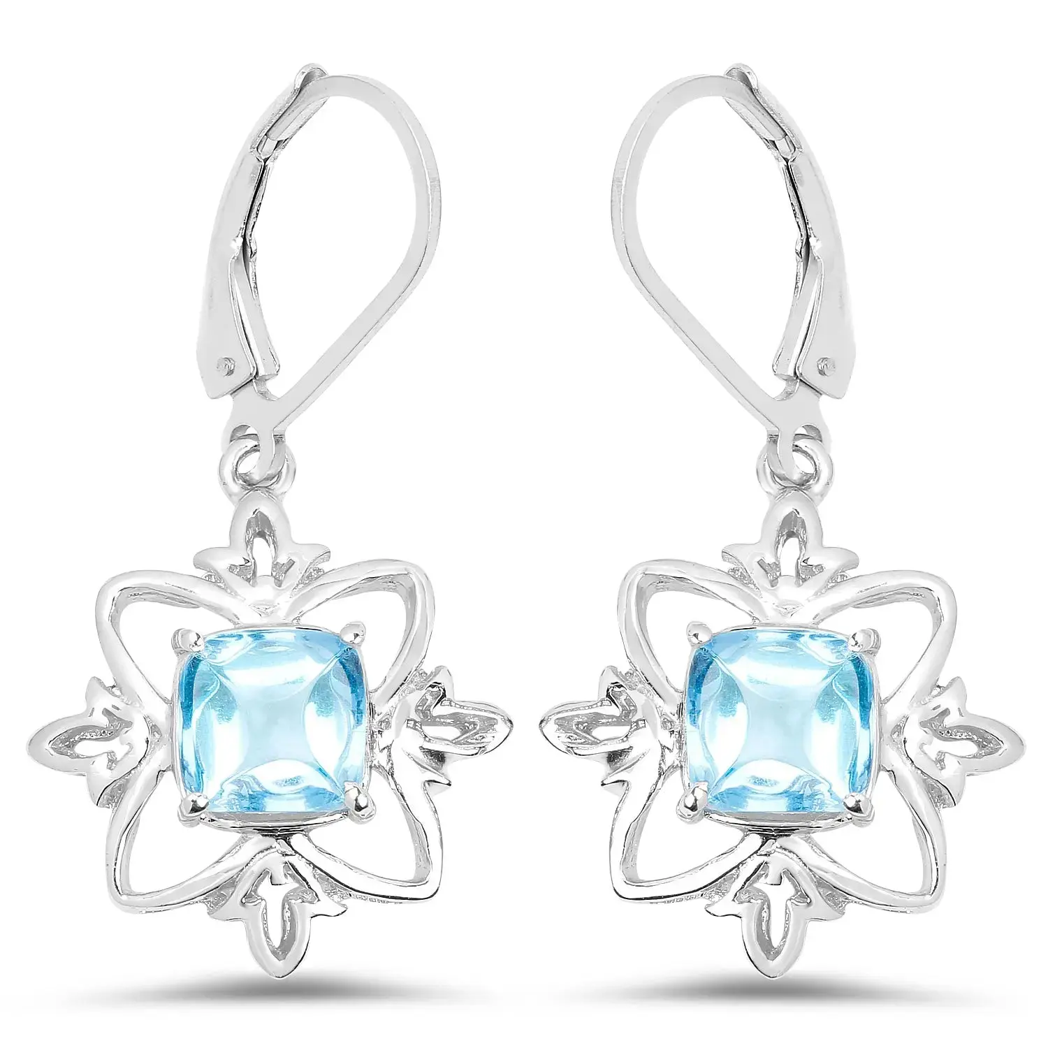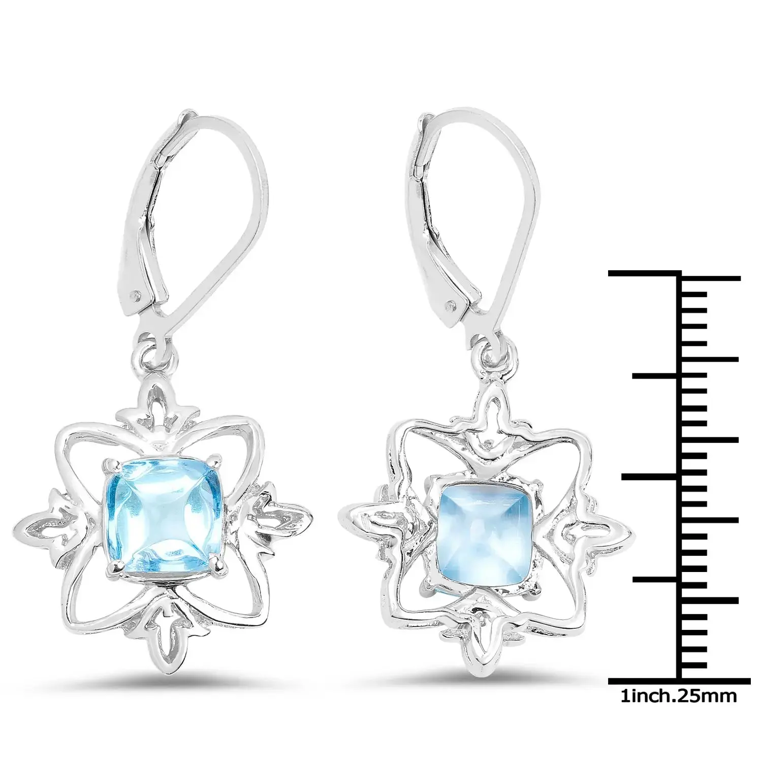 Indulge in the beauty of these stunning earrings featuring a dazzling 5.30 carat genuine Swiss Blue Topaz set in .925 Sterling Silver. The earrings are delicately rhodium-plated, adding an elegant finish. With a total gross weight of 3.99 grams and a gemstone weight of 5.30 carats, these dangle earrings exude timeless sophistication. They measure 34.40 millimeters in length and are secured with a lever back finding for added comfort and security.