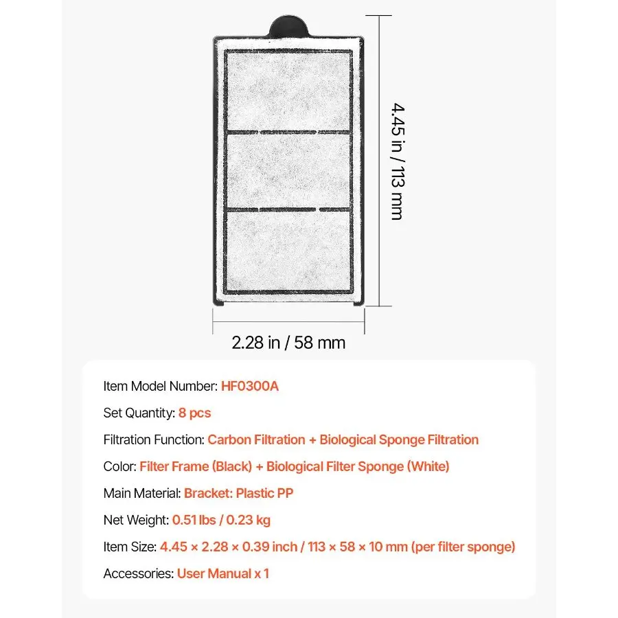 VEVOR Aquarium Filter Cotton, 8 PCS Fish Tank Replacement Filter Cartridges for 2.5/3.5 Gal, Fishbowl Accessories with Multi-Layer Filtration Easy Installation, for MN-200 and MN-280 ModelsVEVOR Aquarium Filter Cotton, 8 PCS Fish Tank Replacement Filter Cartridges for 2.5/3.5 Gal, Fishbowl Accessories with Multi-Layer Filtration Easy Installation, for MN-200 and MN-280 Models