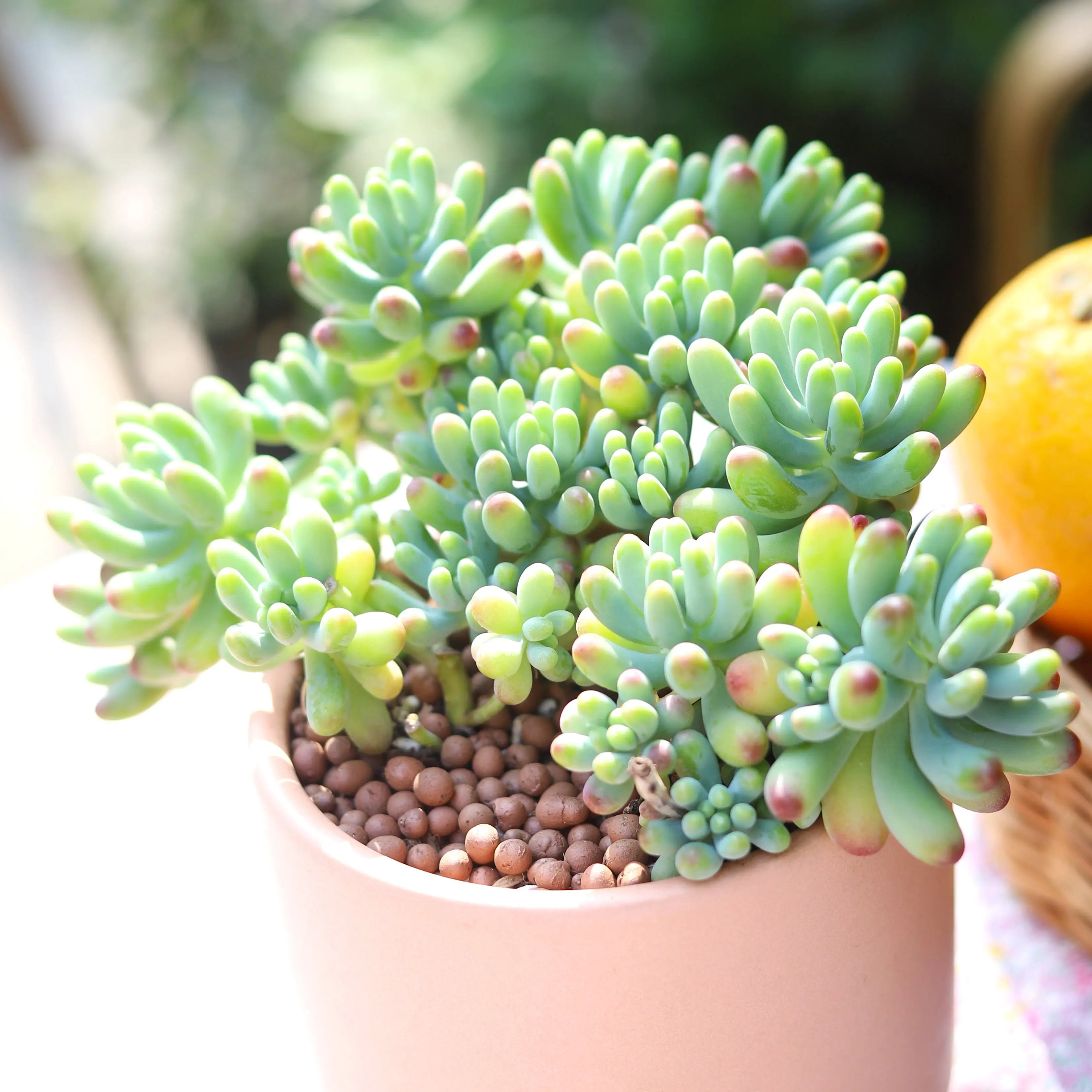· Sedum Pachyphyllum, also known as Blue Jelly Bean Sedum or Sedum Pork and Beans, is a chuby succulent with short silvery green leaves that have red tips when grown in full sun. It has a shrubbing habit and can grow bushes up to 1 foot tall. It may become leggy with age. The leaves and stems can be easily propagated. In summer, it produces clusters of bright yellow flowers.See more about How to care for Jelly Bean Sedum