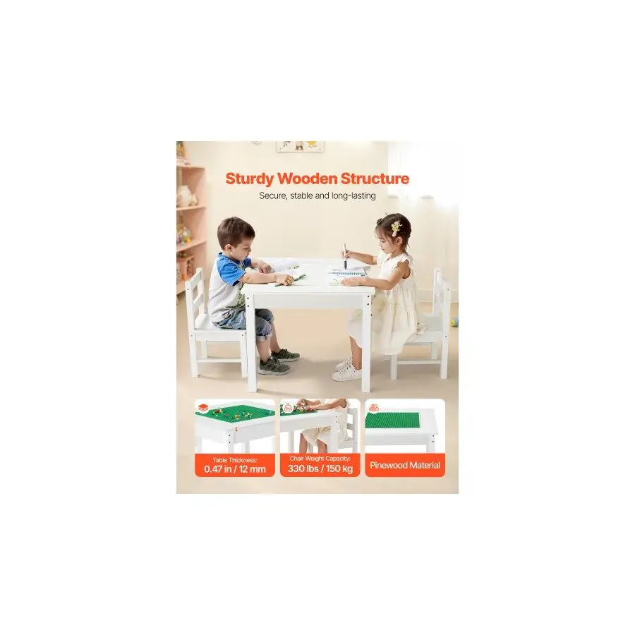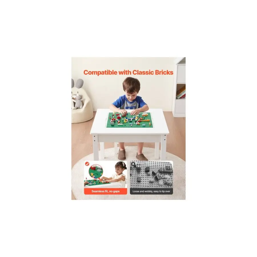 VEVOR Kids Activity Table and 2 Chairs Set, Building Blocks Double-Sided Tabletop, Toddler Table and Chair Set with Storage for Kids 3+ Years, Large Storage Space, Present for Boys Girls, WhiteVEVOR 4 in 1 Kid Activity Table and 2 Chairs Set, Graffiti & Building Blocks Double-Sided Tabletop, Toddler Play Table with Storage for Kids 3+ Years, Large Storage Space, Gift for Boys & Girls, White