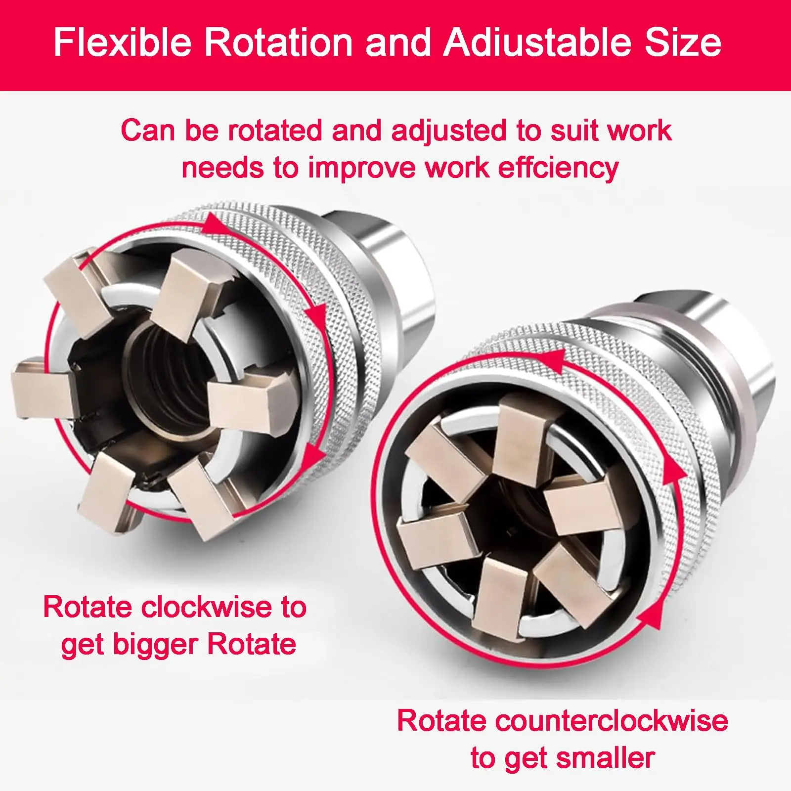Grips and removes damaged, rounded-off and rusty nuts and bolts with ease, most nut and bolt within its continuously adjustable size range. Suitable for DIY maintenance, construction, home decoration, car maintenance, etc.