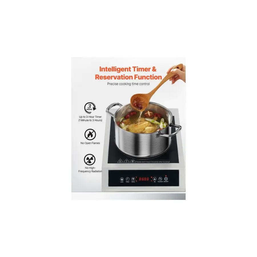 VEVOR Portable Induction Cooktop, 1800W Commercial Induction Burner with 9 Temperature Settings, Stainless Steel Countertop Induction Hot Plate with 3H Timer, Child Lock, for Restaurant CookingVEVOR Portable Induction Cooktop, 1800W Commercial Induction Burner with 9 Temperature Settings, Stainless Steel Countertop Induction Hot Plate with 3H Timer, Child Lock, for Restaurant Cooking