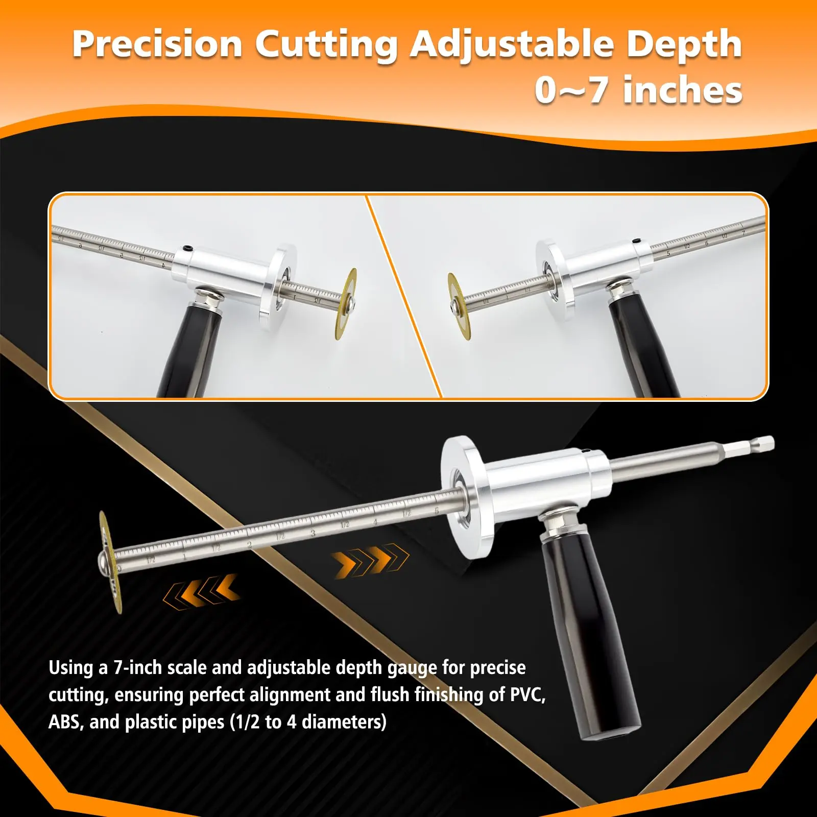 ·【Precision Cutting with Built-In Measurement Tools】 – Engineered with a 7-inch scale and adjustable depth gauge for exact cuts, ensuring perfect alignment and flush trimming of PVC, ABS, and plastic pipes (1/2 to 4 diameters).