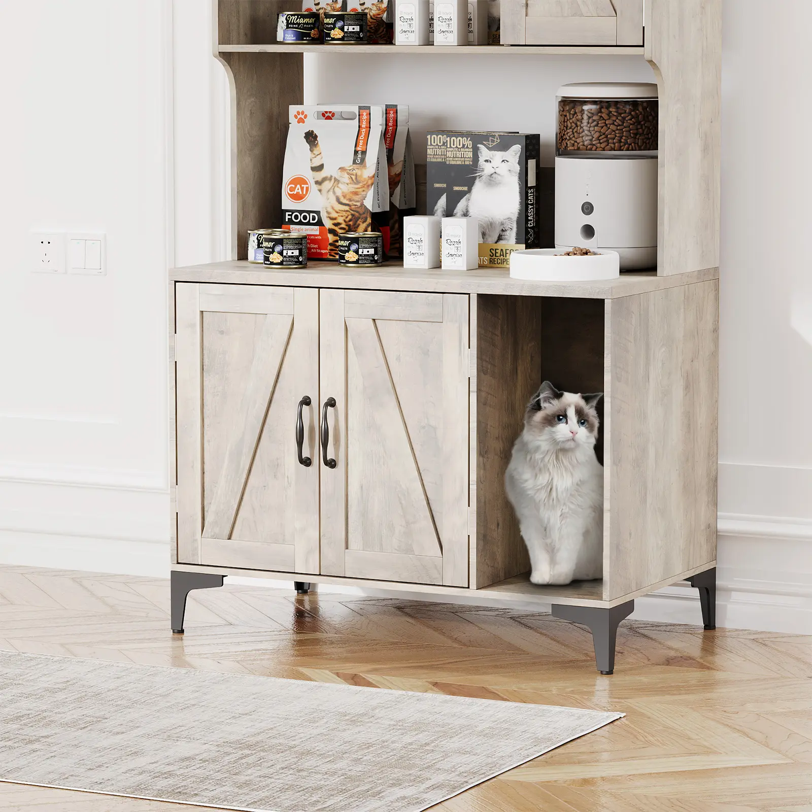 ·Versatile Placement: The elegant gray or walnut finish fits living rooms, bedrooms, bathrooms, or laundry areas, enhancing any decor while hiding unsightly litter boxes.