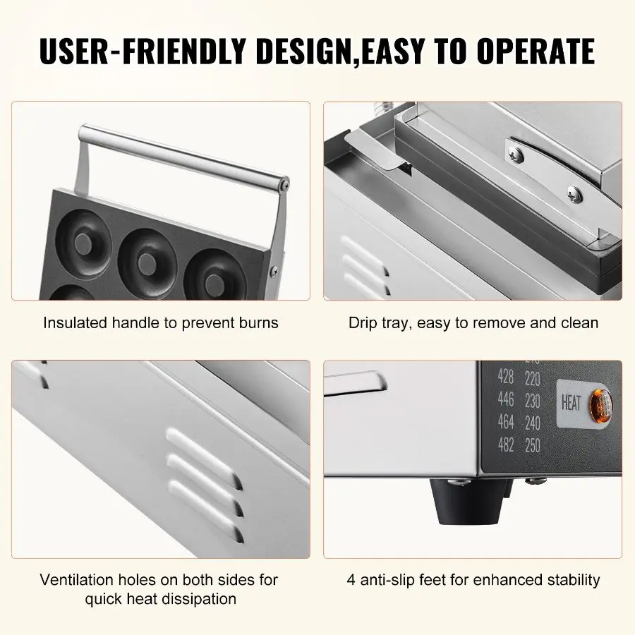 VEVOR Electric Donut Maker, 1550W Commercial Doughnut Machine with Non-stick Surface, 12 Hole Double-Sided Heating Waffle Machine Makes 12 Doughnuts, Temperature 122-572, for Restaurant Home UseVEVOR Electric Donut Maker, 1550W Commercial Doughnut Machine with Non-stick Surface, 6 Holes Double-Sided Heating Waffle Machine Makes 6 Doughnuts, Temperature 122-572℉, for Restaurant and Home Use