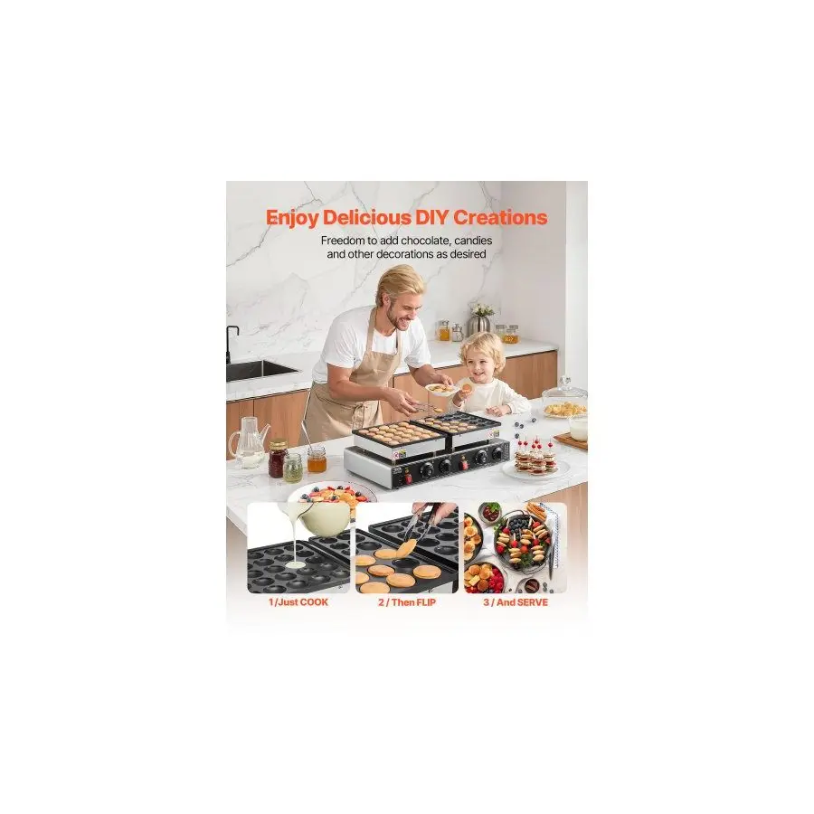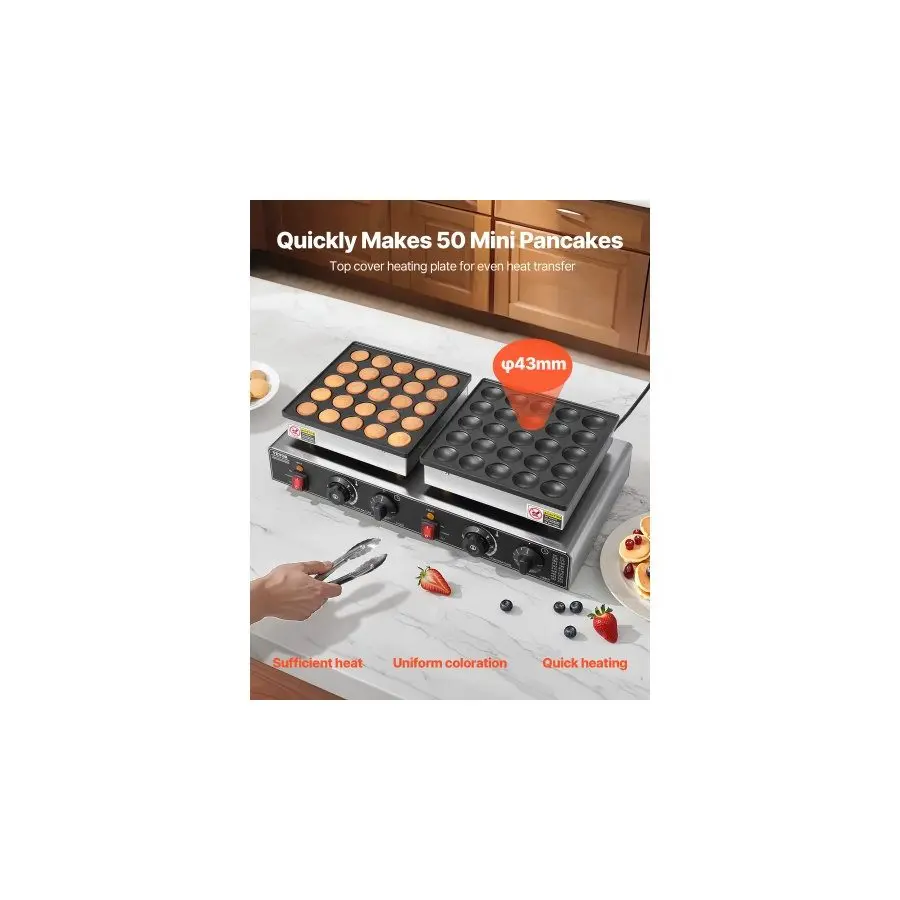 VEVOR 50PCS Mini Dutch Pancake Maker, Non-stick Stainless Steel Dorayaki Baker, 1800W Commercial Electric Poffertjes Grill Pan, Dual Temp Time Control, for Kitchen Restaurant Breakfast DessertVEVOR 50PCS Mini Dutch Pancake Maker, Non-stick Stainless Steel Dorayaki Baker, 1800W Commercial Electric Poffertjes Grill Pan, Dual Temp & Time Control, for Kitchen Restaurant Breakfast Dessert