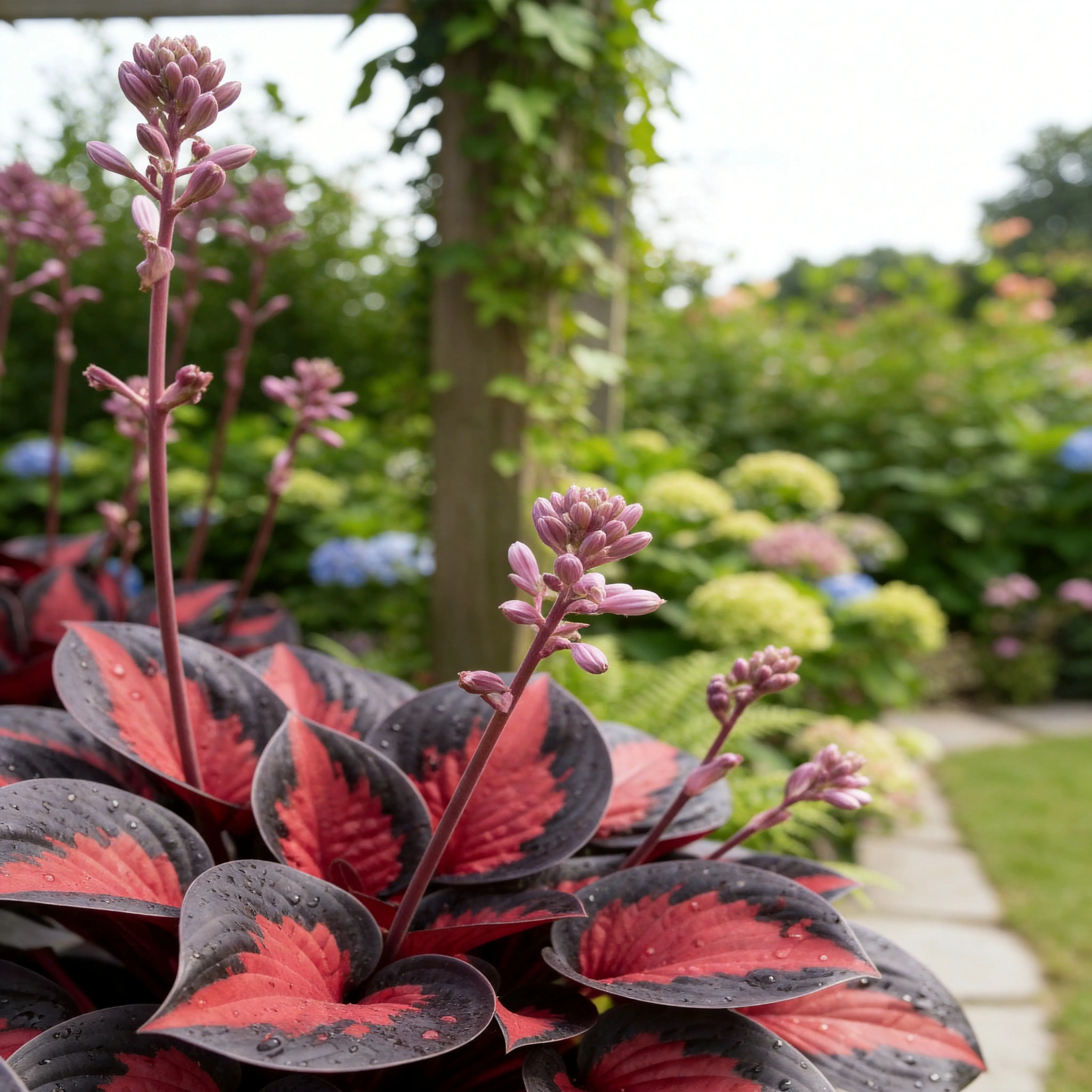 ·Strong Visual Texture: The deep-toned foliage provides a dramatic backdrop for other perennials. Creates a strong visual texture in shaded spaces.