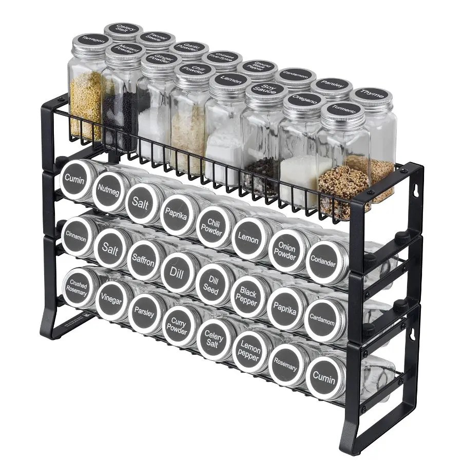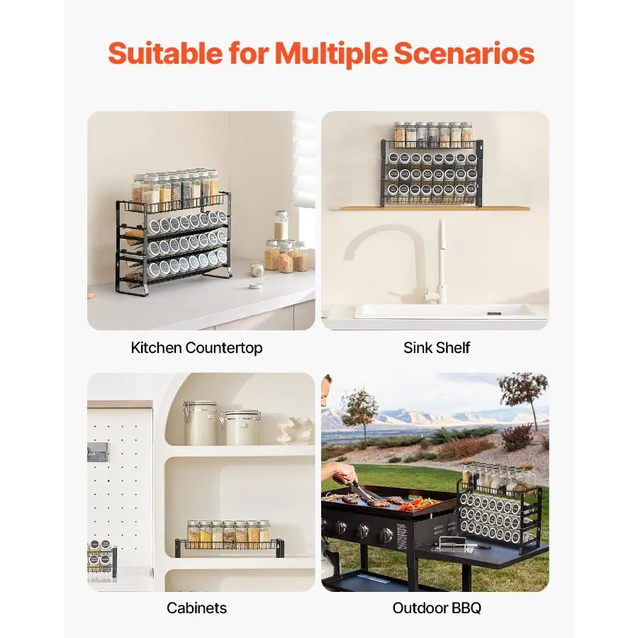 VEVOR Spice Rack Organizer for Cabinet, Spice Organizer with 36 Empty Spice Jars, Lids, Spice Labels, and Funnel Complete Set, Seasoning Organizer for Countertop, Kitchen, Pantry, Cupboard, 18x11 inVEVOR Detachable Spice Rack Organizer for Cabinet, 4 Tie Stackable Seasoning Organizer, Spice Jars Kitchen Storage for Countertop Kitchen Pantry Cupboard, 15.8x10.7 in