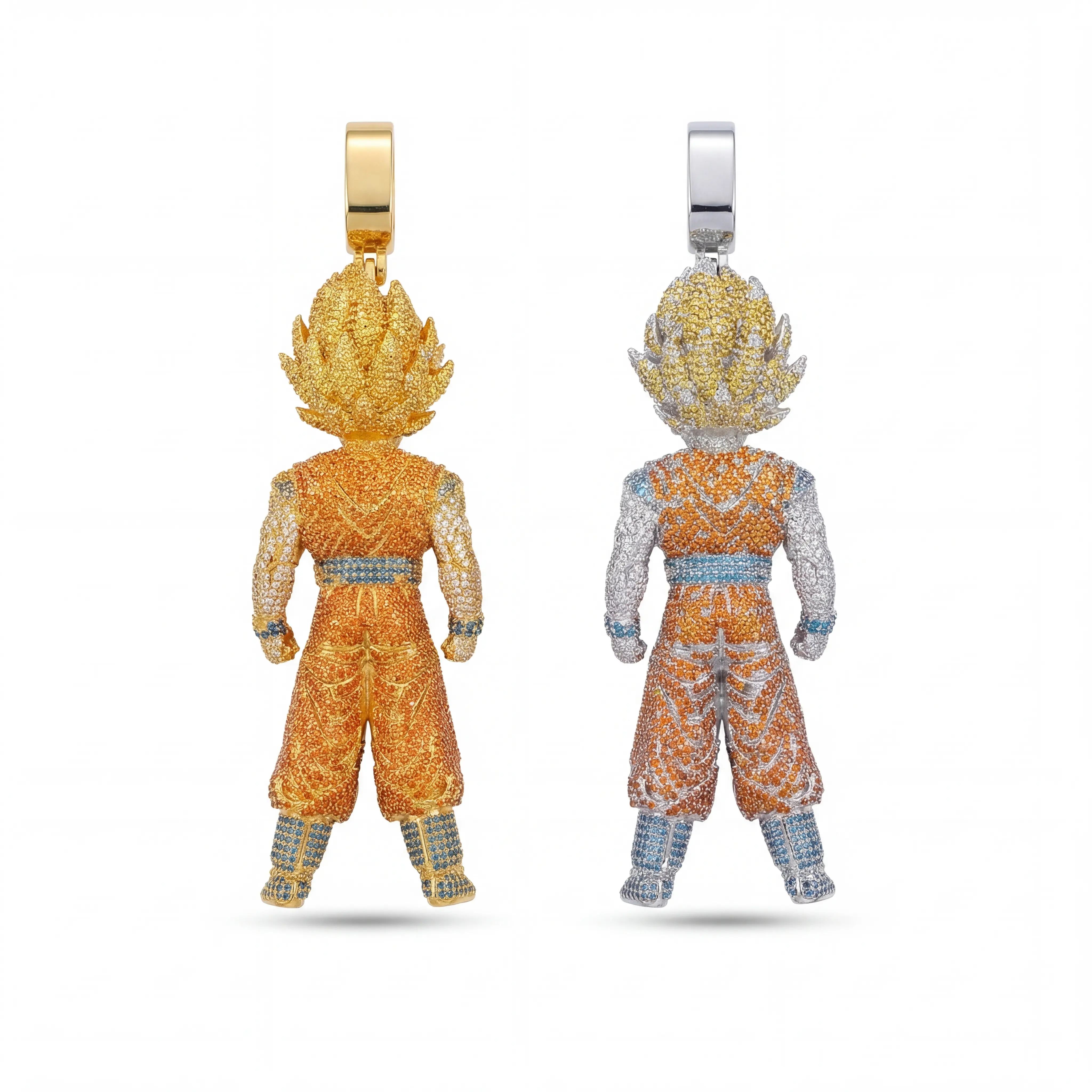 Make a bold, nostalgic statement with this Iced Out Spiky-Haired Cartoon Character Pendant, a striking piece that blends classic anime-inspired design with luxurious hip-hop flair. Meticulously crafted from premium copper, every inch of this pendant is encrusted with sparkling multi-color cubic zirconia stones, capturing the iconic spiky hair, vibrant outfit, and bold silhouette of a beloved cartoon hero. This is the ultimate accessory for fans of retro-inspired style and streetwear culture.