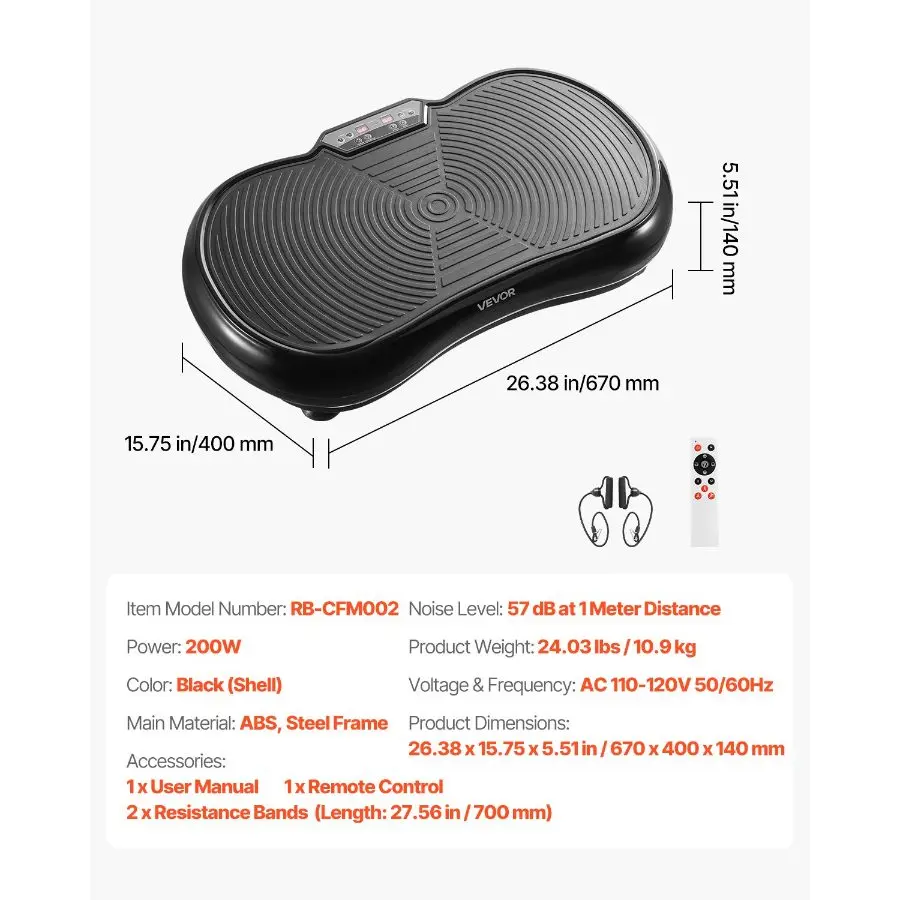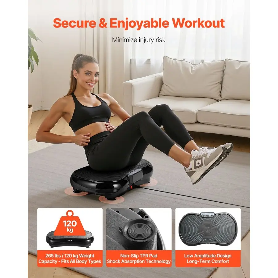 VEVOR Vibration Plate Exercise Machine, Full Body Vibrating Platform for Lymphatic Drainage and Weight Loss, Home Workout Fitness Equipment with 2 Resistance Bands, Body Shaker for Women Men, Black