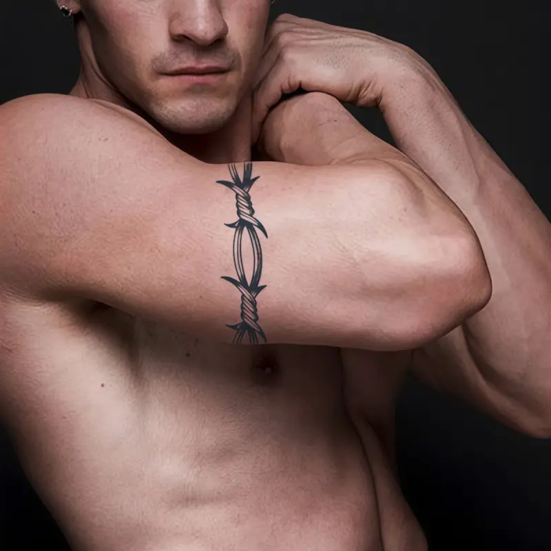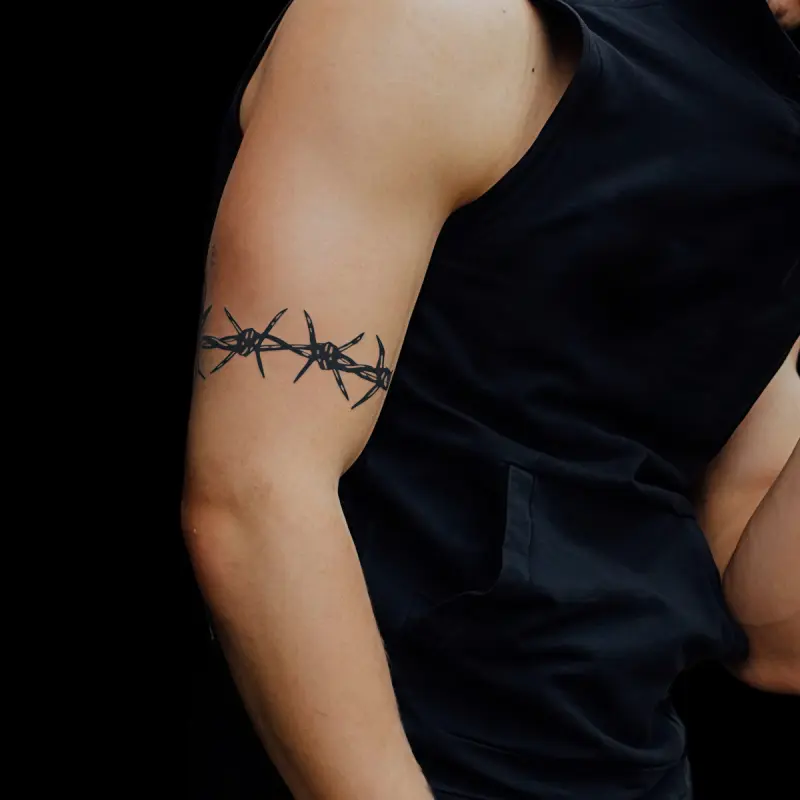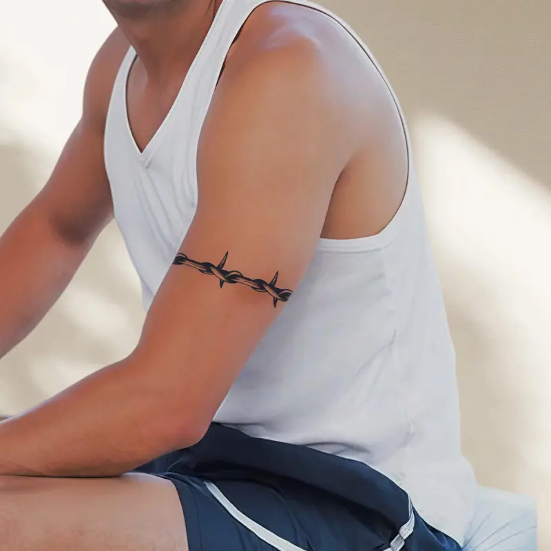 Barbed Wire Armband Juice Temporary Tattoo Sticker Magic Tattoo Waterproof Long-Lasting 7-15 Days Herbal Semi-Permanent Tattoo for Women Arm Collarbone Realistic Tattoo Fake Tattoo Line Tattoo
